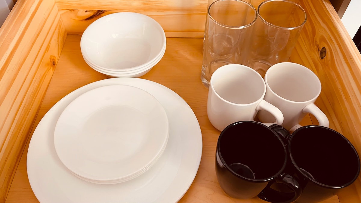 • Appliances and kitchenware for two.