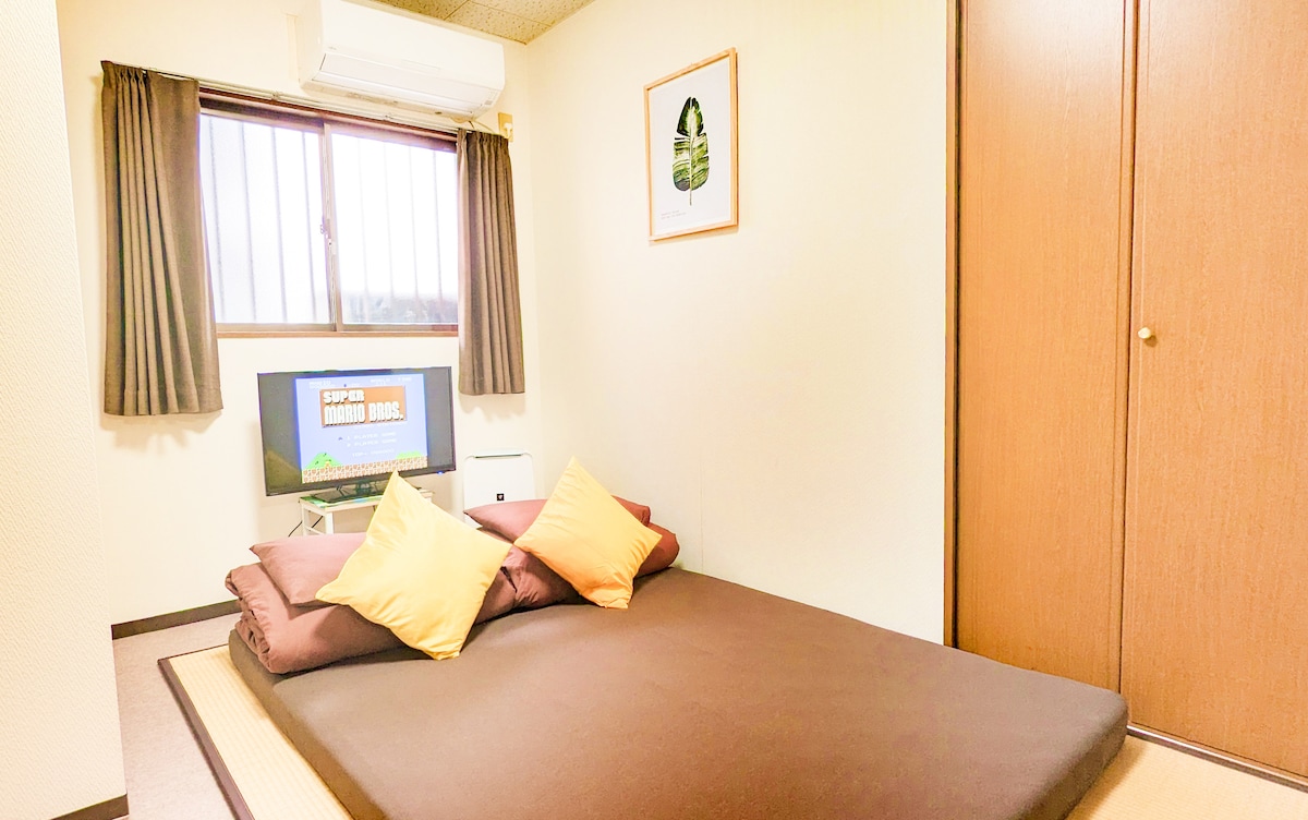 房間為和室塌塌米,1張雙人床墊&1張和式床鋪