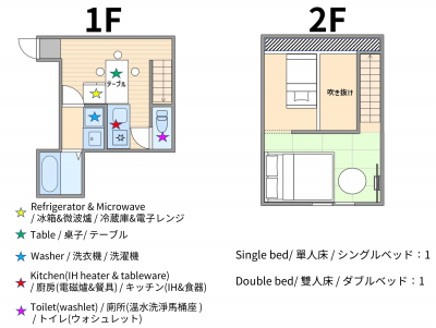 102号室:最大5名(洋室タイプ)→POPでCuteなかわいいお部屋