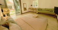The room comes complete with modern amenities including WiFi, AC, hot water, and a smart TV. For surf enthusiasts, enjoy the added convenience of in-room surfboard racks. The accommodation also boasts a kitchenette, complete with a fridge, kettle, coffee plunger, cutlery and a water gallon. Slide open your balcony doors for instant access to the beach – surf paradise is just footsteps away.
