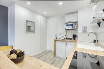 Idéal pour passer quelques jours de détente en amoureux ou pour vos déplacements professionnels. L’appartement de 35m² dispose de 5 couchages (dans le salon un canapé convertible en lit 2 places, dans la chambre un lit 2 personnes et 1 fauteuil convertibles en lit 1 place) plus un lit parapluie si besoin.
