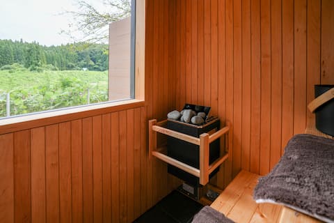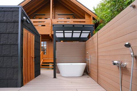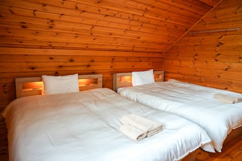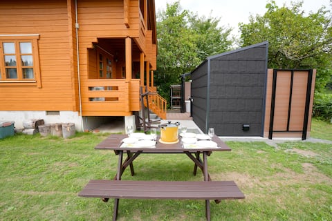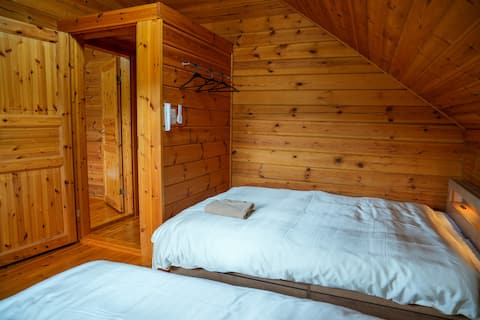 BBQやサウナ、露天風呂が満喫できる3LDK2階建て、一棟まるまる貸切のログハウス。