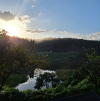 2階のウッドデッキからは緑いっぱいの大自然が一望でき、夜空を眺めながらまったりワインタイムも楽しそう。