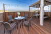 玄関前には屋根付きプライベートデッキで、アウトドア家具を完備しており、BBQをお楽しみいただけます。