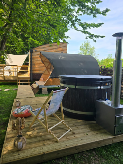 - Une terrasse avec table et bain nordique