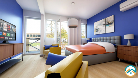 Découvrez le studio Isaline, un F1 de 30 m² situé au 1er étage de la résidence, côté rue de Verdun.