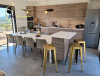 Un vaste séjour ouvert sur une cuisine moderne, équipée de lave-vaisselle, cave à vin, trancheuse, frigidaire américain, cafetière à filtre & Nespresso, etc.. Vous trouverez à votre arrivée tout le 1er nécessaire (café, sucre, sel, poivre, huile, vinaigre, Papier WC, etc.) vous permettant d’arriver sereinement.
