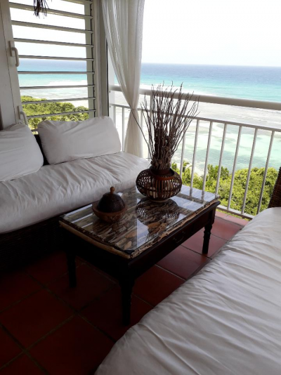 Le Studio Orchidée 782, situé légèrement en hauteur dans la résidence Anse des Rochers à Saint-François, offre une vue panoramique et sans vis-à-vis sur la mer des Caraïbes. La résidence propose la plus grande piscine de l'île, un bassin de 1000 m² et une pataugeoire pour les enfants. Une plage privée et le restaurant "Le ti coco" sont accessibles à quelques pas.