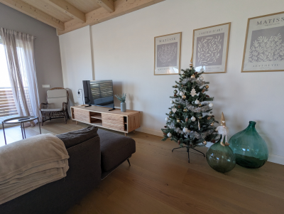 Un angolo per tutti: la luminosa zona giorno può ospitare fino a otto persone a tavola, mentre la zona notte è composta da tre stanze: due matrimoniali e una con tre letti singoli.