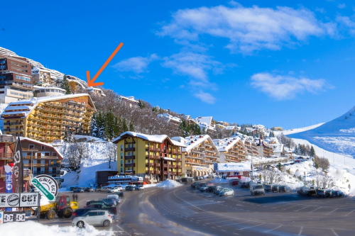 At the beginning of the porch of the town center, a sunny balcony with a beautiful view of the mountains and slopes. Very close to all the shops, restaurants and services of the town