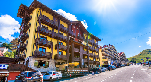 The historic area of Prato Nevoso, the portico with its columns and activities runs along the central basin of the ski slopes up to the middle of the ski lift, which is why it offers a splendid sunny panorama during the day