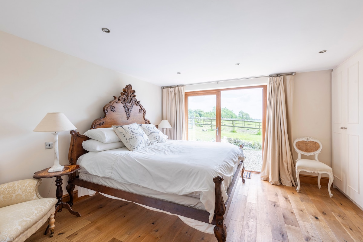 Upper Calffield Barn is a single-storey luxury barn conversion featuring a spacious open plan reception room, conservatory dining area, two bedrooms, and two bathrooms. Set in seven acres of grounds with paddocks and fields, the property offers vaulted ceilings, oak floors, and French windows opening onto a private terrace. Enjoy stunning views of the paddocks and fields. The barn is converted to the highest standards with everything you need for a relaxing and comfortable holiday.