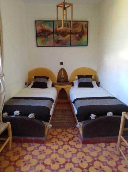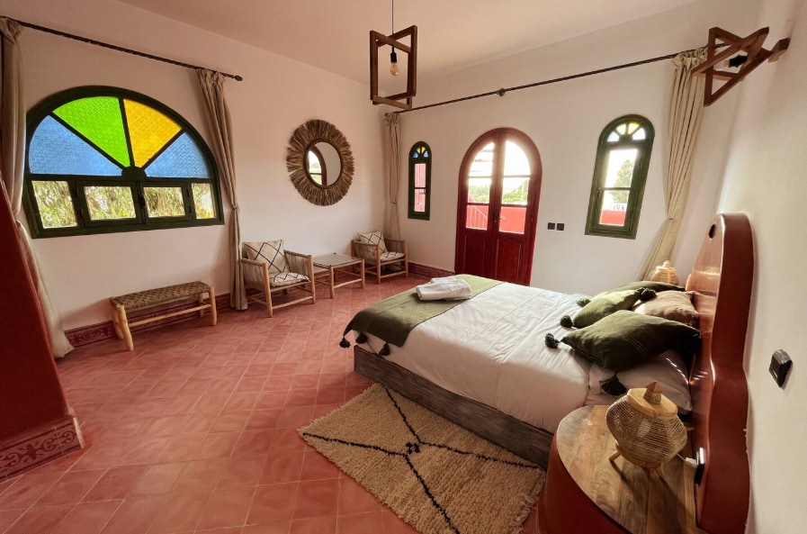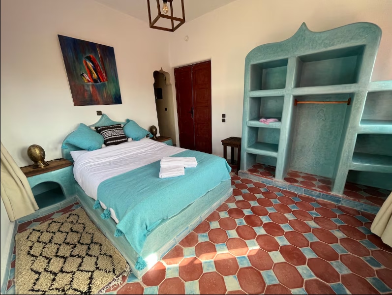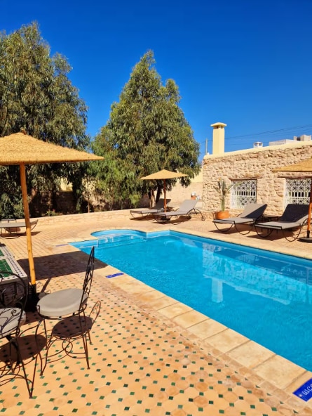 La Villa Nouran vous accueille dans un cadre paisible à 10 minutes d’Essaouira. Elle dispose de 7 chambres avec salle de bain privée, d’une terrasse avec piscine, bains de soleil, barbecue et deux salons à disposition. Connexion internet fibre gratuite dans toute la villa. Petit déjeuner inclus, possibilité de repas sur place. Aïcha vous préparera de délicieuses spécialités marocaines faites maison.