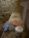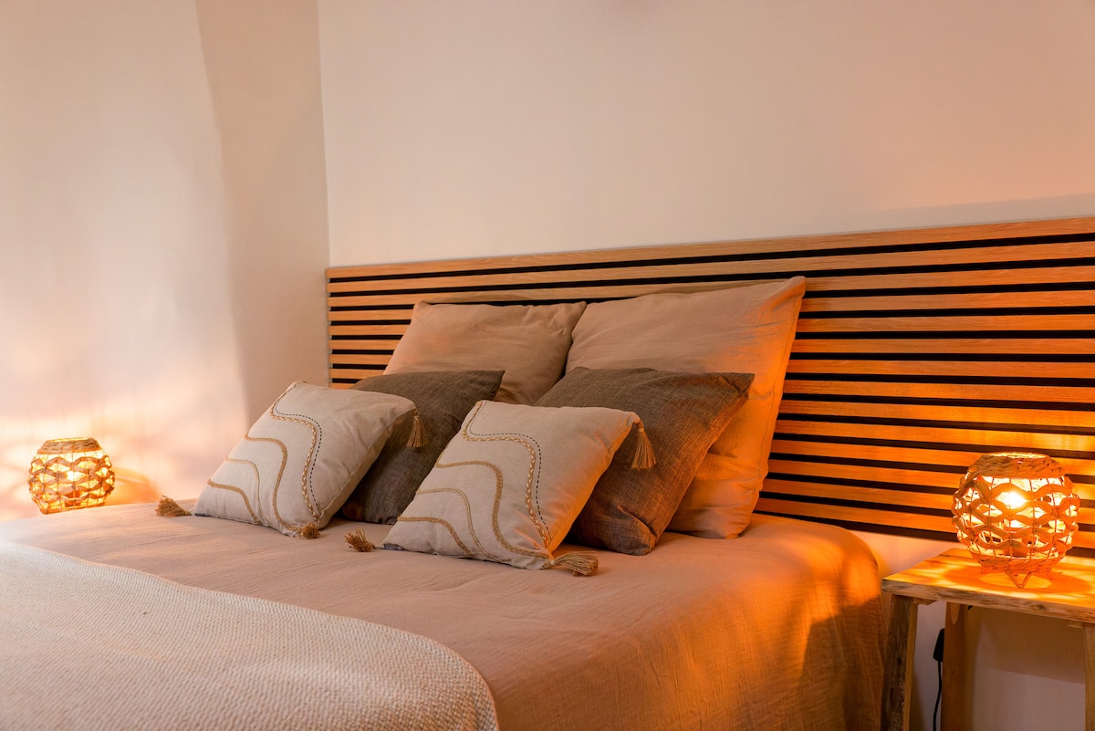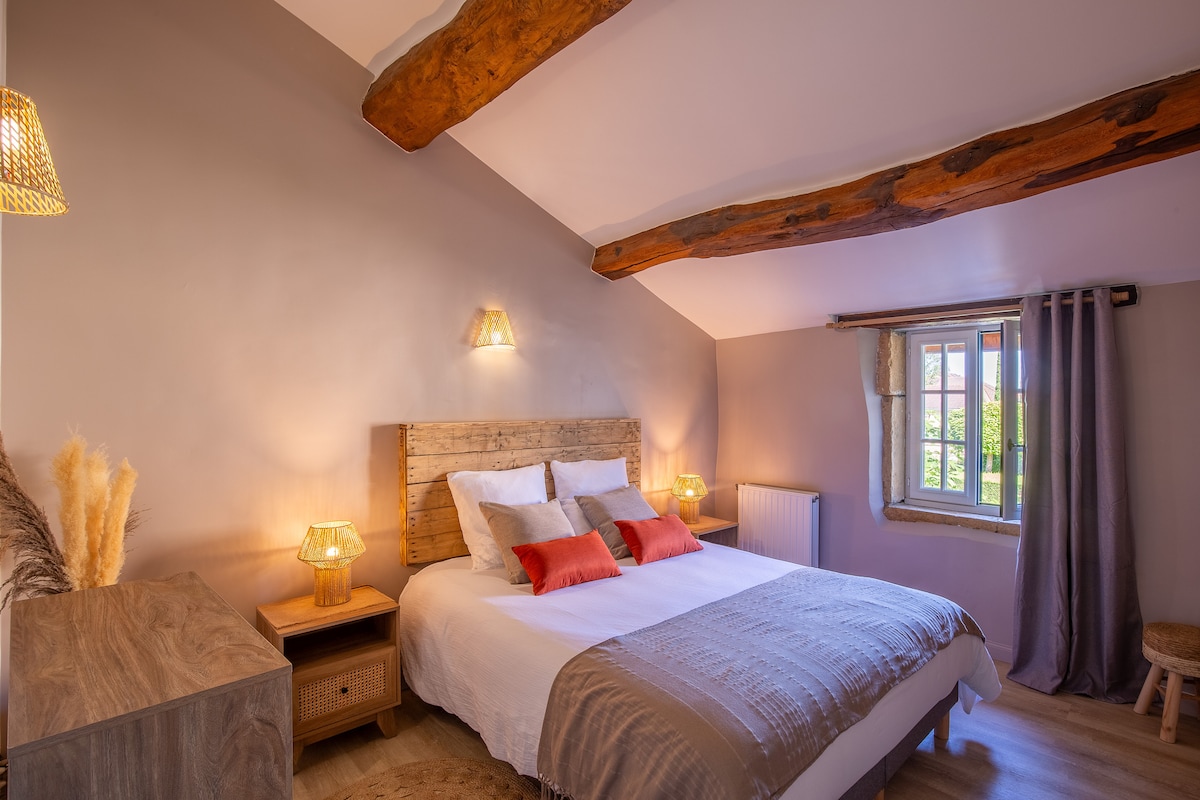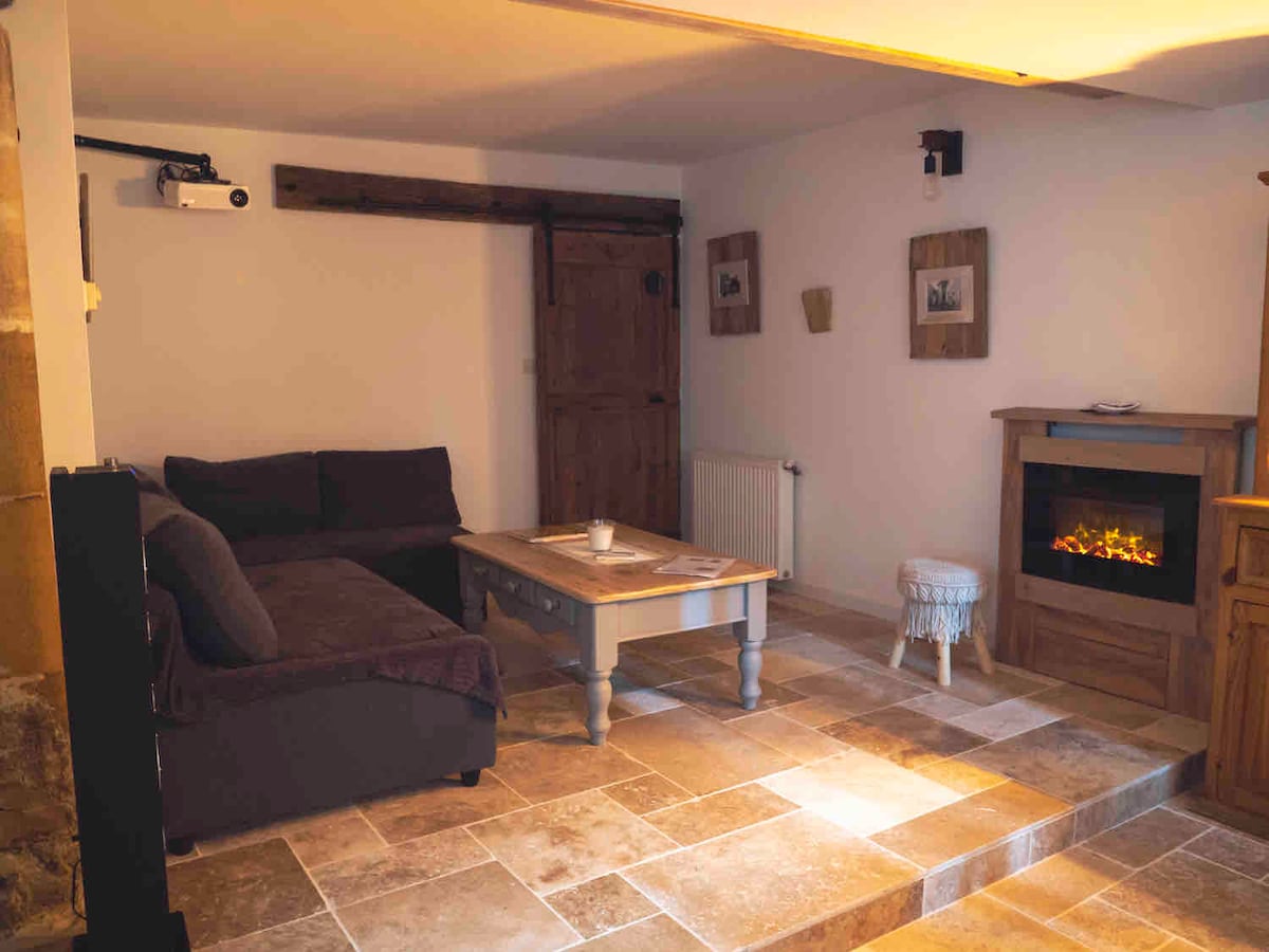 Le logement, entièrement climatisé, offre une cuisine équipée (four, lave-vaisselle), un grand salon avec poêle à granulés et TV 4K.À l’étage : deux chambres, un coin lecture et une vaste salle de bain. L’espace bien-être se niche dans les caves voûtées en pierre : profitez d’un jacuzzi face à la cheminée et des bienfaits d’un hammam en pierre naturelle.
