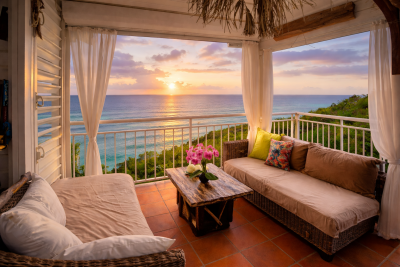 Le Studio Orchidée 782, situé légèrement en hauteur dans la résidence Anse des Rochers à Saint-François, offre une vue panoramique et sans vis-à-vis sur la mer des Caraïbes. La résidence propose la plus grande piscine de l'île, un bassin de 1000 m² et une pataugeoire pour les enfants. Une plage privée et le restaurant "Le ti coco" sont accessibles à quelques pas.