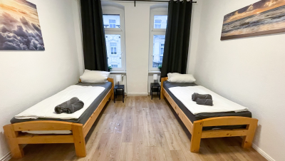 Schlafzimmer 1 (Durchgangszimmer) • 2 Einzelbetten Schlafzimmer 2 • 2 Einzelbetten | 2 Zimmer Apartment |