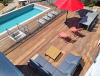 L'expérience se prolonge à l'extérieur sur une magnifique terrasse en bois IPE. Ce véritable espace de vie extérieur dispose d'une grande table à manger, d'un barbecue à gaz et d'un salon spacieux avec transats et parasols, le tout bordant une grande piscine privée totalement à l'abri des regards.
