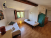 Outside, the expansive 1,200 m² private grounds offer a rare level of intimacy. The large, shaded terrace, surrounded by lush greenery, becomes the ultimate summer lounge—perfect for sharing moments around the barbecue—while sun loungers await for afternoons of contemplation facing the majestic Corsican peaks.