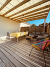 → TERRASSE BOIS 100M² avec table et chaise de jardin 6 personnes