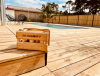 → WOODEN TERRACE 200 m² with table/garden chairs for 8 persons, barbecue and deckchairs