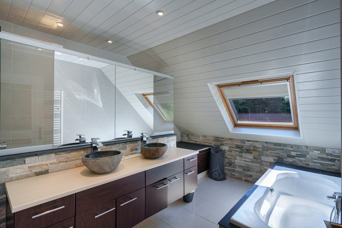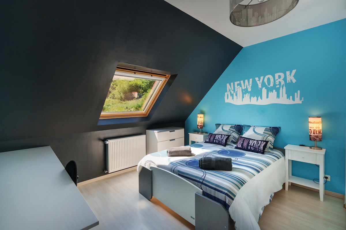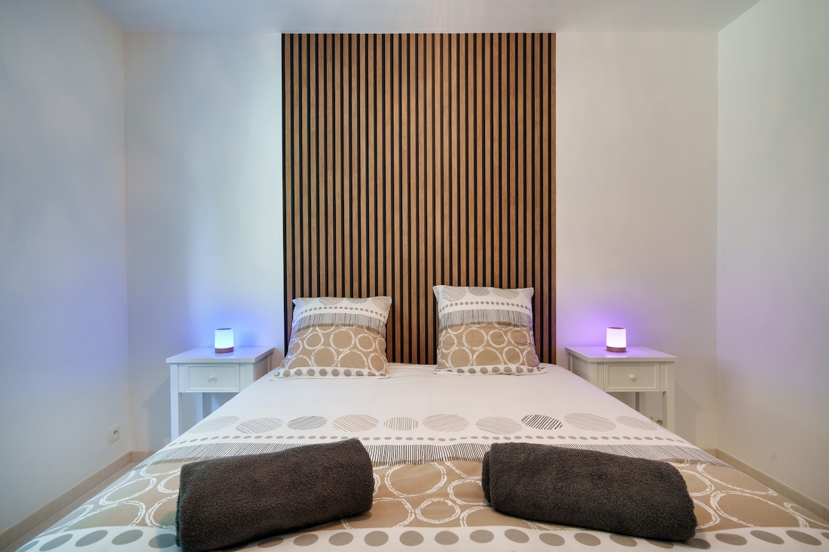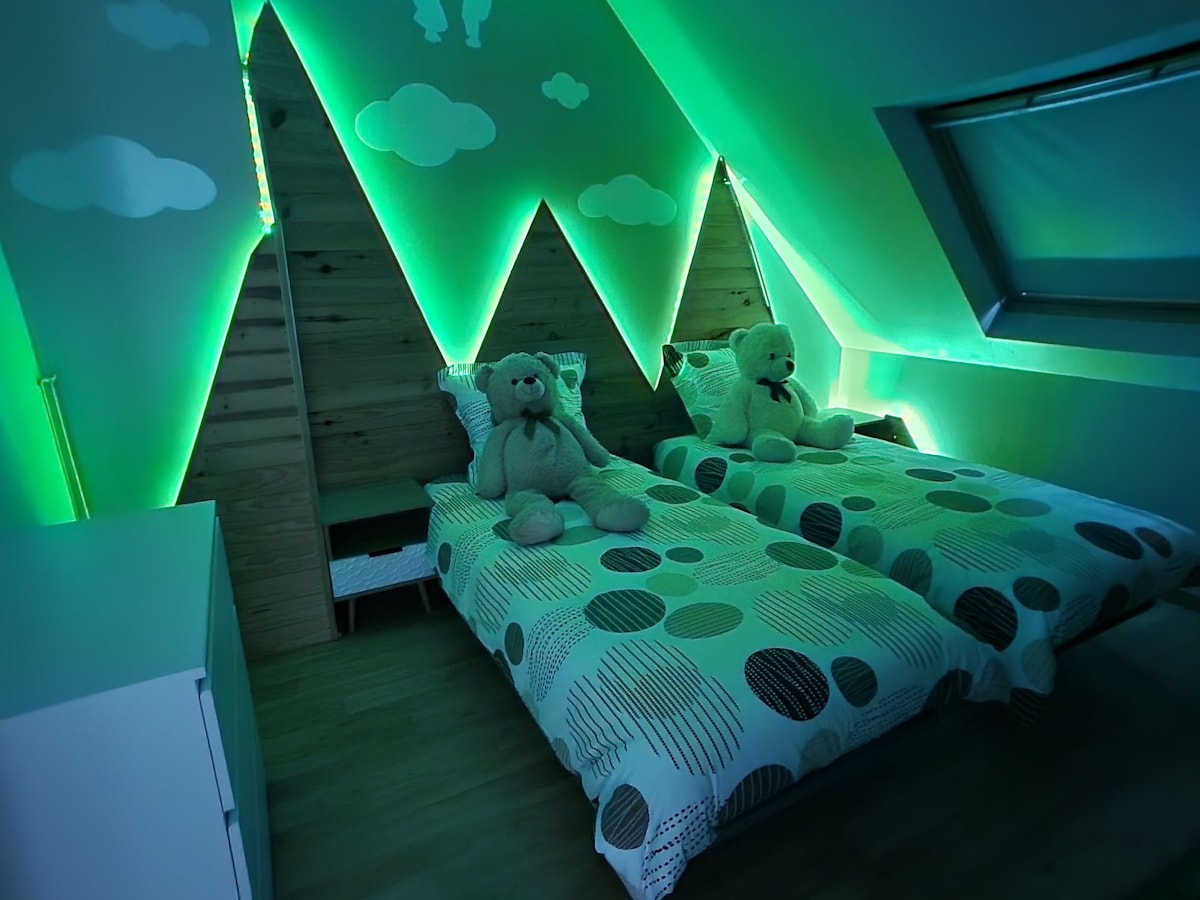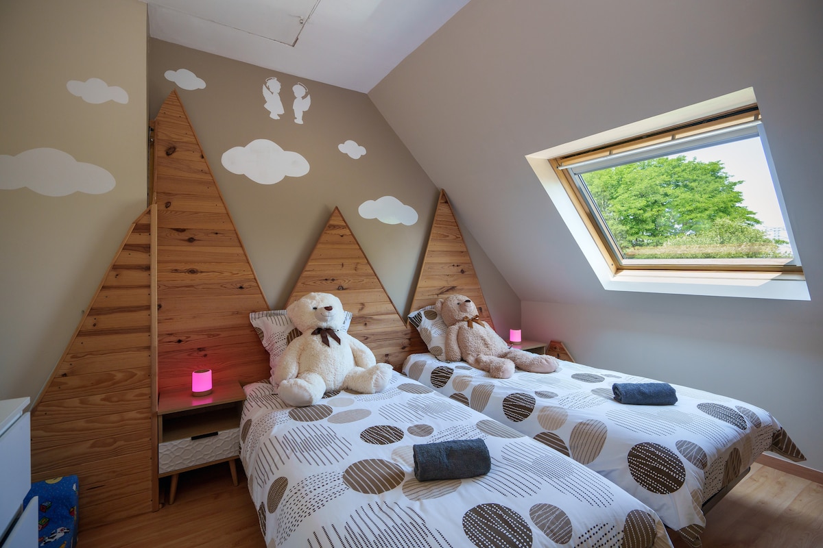 Aux portes de la ville et à proximité immédiate des grands axes, cette maison spacieuse peut accueillir jusqu’à 8 personnes. Lumineuse et chaleureuse, elle offre un cadre idéal pour un séjour confortable en famille ou entre amis, dans un environnement calme et verdoyant.