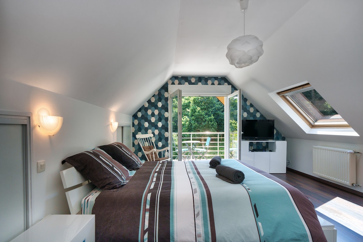 La situation géographique permet de rejoindre facilement les plages et sites du sud Finistère, ainsi que les commerces (supermarchés, boulangerie, caviste…) accessibles en quelques minutes en voiture. La gare et la salle événementielle Kostum Park se trouvent également à proximité. Connexion WIFI disponible pour votre confort.