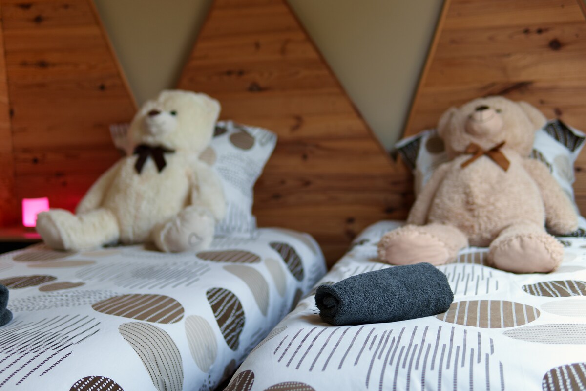 La literie récente comprend deux lits de 160 cm, un lit de 140 cm et deux lits de 90 cm. Le logement est classé meublé de tourisme 3 étoiles.