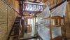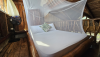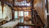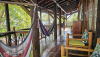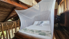 Organic and rustic mezzanine style loft with a private bathroom and views of the sunset and ocean. With a private hammock just outside the room. Completely made out of recycled materials and wood, featuring a double bed plus one bunkbed, each with mosquitonets and fans.