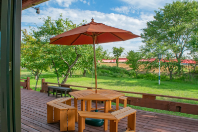 Cottage Hideaway Surrounded by Apple Orchards with a View of Mount Iwaki This large log house features a spacious wooden deck and offers a luxurious location where you can experience the seasonal beauty of Aomori’s Tsugaru region. It accommodates up to 6 guests and is available for exclusive use. Enjoy the natural warmth of wood unique to log houses. The living room welcomes you with a high vaulted ceiling, a wide wooden deck, a wood-burning stove, and comfortable sofas. Adjacent to the living room is a tatami room, which offers the much-desired view of Mount Iwaki from its windows. The entire property has been recently renovated and is equipped with Wi-Fi to ensure a comfortable stay. The 2,000-tsubo (approx. 6,600 m²) property and log house provide a private space exclusively for guests during their stay. The house is set slightly back from the road, giving it the feel of a secluded retreat. Whether you wish to relax peacefully or enjoy lively times with family and friends, we have prepared an environment to satisfy all guests. Guests staying for one week or longer are eligible for a long-term stay discount. Accommodation Plan The log house (cottage) is exclusively rented to one group at a time, with a maximum capacity of 6 guests. The rate is the same for up to 3 guests; from the 4th guest onward, an additional charge applies per person. Child Policy: There are no special child rates. Children aged 2 and above are charged the same rate as adults. Please include children aged 2 and above in the total number of guests when booking. Important Notice: Entry to the accommodation is limited to registered guests listed on the reservation. Meals Meals are not included in the accommodation fee. Guests may dine out at nearby restaurants or cook in the facility’s kitchen. The kitchen is equipped with a 3-burner induction cooktop, refrigerator (with freezer), microwave, toaster oven, pots, frying pans, and sufficient dishes and glasses for 6 guests. Please note: Seasonings and condiments are not provided; please bring your own. Please refrain from cooking foods with strong odors or using hot plates inside. Winter BBQ Set (Coming Soon) We are preparing a snow BBQ set for winter enjoyment. If interested, please contact us via message after your reservation is confirmed. Recommended Dining Nearby Restaurant Miyuki (Kuroishi Komise Street): Enjoy local specialties like Tsuyu Yakisoba (sauce noodles), sushi, rice bowls, and elegant Japanese set meals. Kids’ menu available. Jumonji Café (Kuroishi Komise Street): Located at Komise sightseeing base “Matsunoyu Exchange Hall,” this café offers Asian cuisine. Enjoy authentic Malaysian coconut chicken curry produced by Malaysian native Lee Nyok Peng. There are many other dining options around Kuroishi Komise Street. Rooms First Floor: Living room, Japanese-style tatami room (8 tatami mats), kitchen, toilet, bathroom. The living room has a wood-burning stove available for guest use (please avoid cooking with it due to risks of spillover or burning). If you prefer not to use the stove, the room is heated by air conditioning and heaters, keeping it warm even in winter. The tatami room connected to the living room can accommodate up to 4 sets of futons for sleeping and features a kotatsu (heated table) to enjoy warmth before bedtime. Wood Stove Use: Upon arrival, the room will be preheated with air conditioning. For a warmer, cozier atmosphere, please consider using the wood stove. You must purchase firewood provided by Cottage Hideaway (one bundle for 2,000 yen). Bringing your own firewood is prohibited. Firewood prices may vary by season—please inquire. One bundle lasts about 3 hours. Please notify us in advance if you wish to use it. Towels: Each guest receives one bath towel and one face towel regardless of the number of nights. Please wash and reuse as needed. Additional towels are not provided. Second Floor: One bedroom with two single beds and an open space. The open space is divided into two areas: a work area (or dad’s space) with a desk, sofa, and table; and a kotatsu area (or children’s space) with a low sofa and kotatsu for a warm, enjoyable time. The low sofa can also be used as a sofa bed. Note: The staircase to the second floor is somewhat steep and slippery—please be careful when going up and down. Important Notes Winters are cold and snowy. Guests arriving by car must use winter tires or chains. The host cannot respond to vehicle troubles during your stay. The host is not responsible for injuries during your stay. Please ensure you have travel insurance. Ceiling heights near the stairs and roof slope on the second floor are low; watch your head. Be cautious of snow falling from the roof in winter. Guests have free access to the property and garden during their stay but must not enter host’s private storage sheds without permission. Nearby Attractions This cottage is ideally located as a base for sightseeing in Aomori’s Tsugaru region, with easy access to Shirakami-Sanchi, Lake Towada, Oirase Gorge, and major ski resorts. Ski Resorts: Hakkoda Ropeway base station: 45–50 minutes by car Aomori Spring Ski Resort: 45 minutes by car Owani Onsen Ski Resort: 30 minutes by car Nature & Trekking: Lake Towada: 1 hour 30 minutes by car Oirase Gorge: 1 hour 45 minutes by car Shirakami-Sanchi Visitor Center: 45 minutes by car Aqua Green Village ANMON (closed in winter): 1 hour 10 minutes by car Nakano Momiji Mountain: 20 minutes by car Hot Springs: Kuroishi Onsen Area (Nukayu, Ochiai, Itadome): 20 minutes by car Lamp-no-Yado Aoni Onsen: 40 minutes by car Dake Onsen: 40 minutes by car Tourist Spots: Rice Field Art Observation Decks (No.1 & No.2): 5 minutes by car Kuroishi Komise Street: 6 minutes by car Tsugaru Traditional Crafts Museum & Tsugaru Kokeshi Doll Museum: 6 minutes by car Hirosaki Castle Park: 25–30 minutes by car Tsuru no Mai Bridge: 30 minutes by car Iwaki Shrine: 35 minutes by car Access For convenience, we recommend