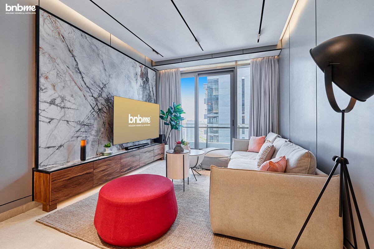 Experience elevated living in this elegant two-bedroom apartment on the 22nd floor of Silverene Tower B, set in the heart of Dubai Marina. Designed with plush king-size beds, refined interiors, and a private balcony offering panoramic views of the Marina, this space is perfect for both leisure and business travellers. Enjoy the convenience of being just a 9-minute walk to Marina Mall, 11 minutes to JBR Beach, and 8 minutes to DMCC Metro Station. The building offers top-tier amenities including a swimming pool, a fully equipped gym, high-speed elevators, secure basement parking, and 24/7 security. With Oregano Italian Restaurant, SipN’ Café, and Carrefour Market located on the ground floor, dining and essentials are always within reach. Guests also have access to bnbme’s premium services, including daily housekeeping and a dedicated concierge—available upon request to elevate your Dubai stay.