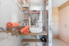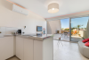 La cuisine est entièrement équipée avec réfrigérateur/congélateur, table à induction, micro-ondes, lave-vaisselle, machine à café, bouilloire, grille-pain, vaisselle.