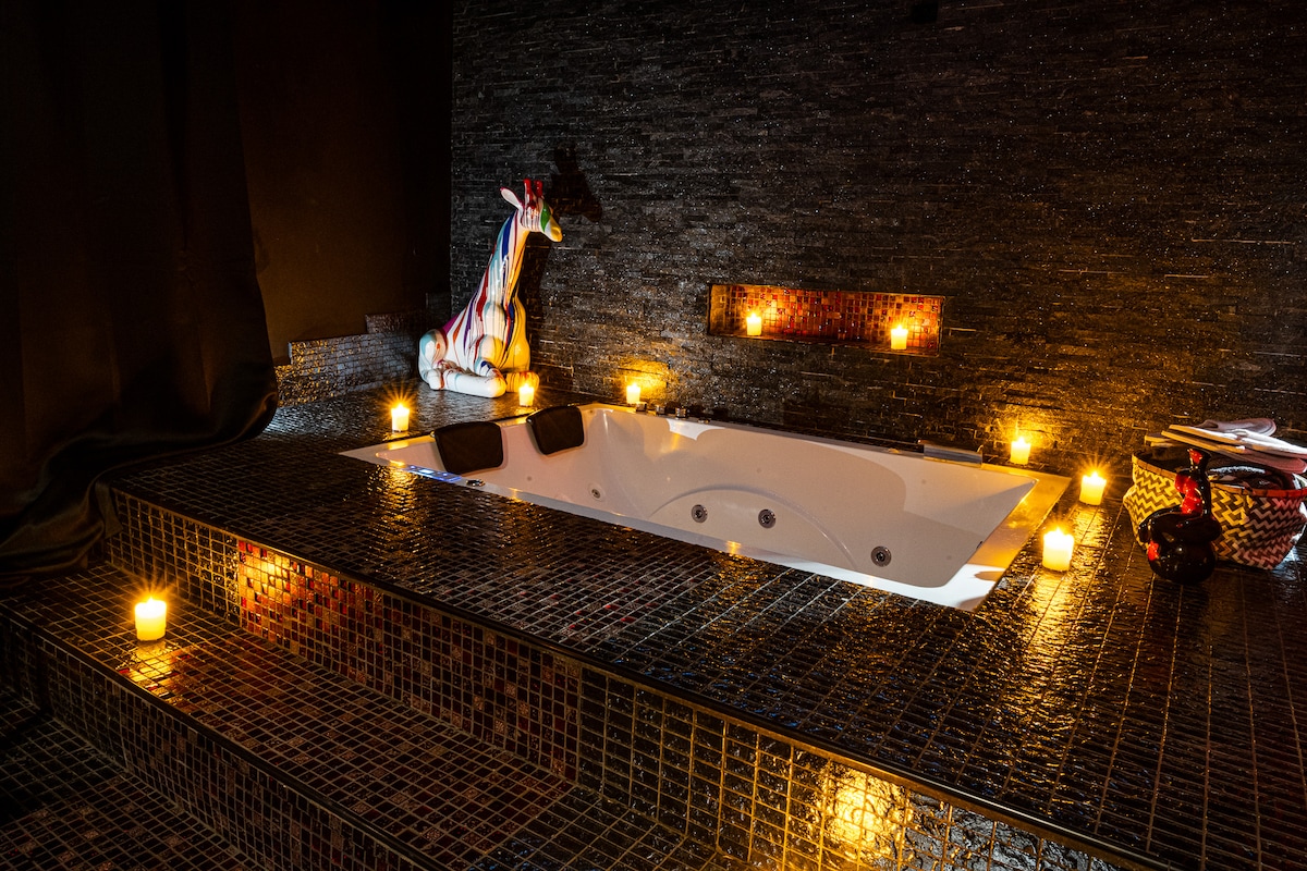 Venez profiter du spa privatif chauffé à température idéale ! Rien de tel qu'un jacuzzi, sous un ciel étoilé, pour vous relaxer à deux et passer un moment hors du temps !
