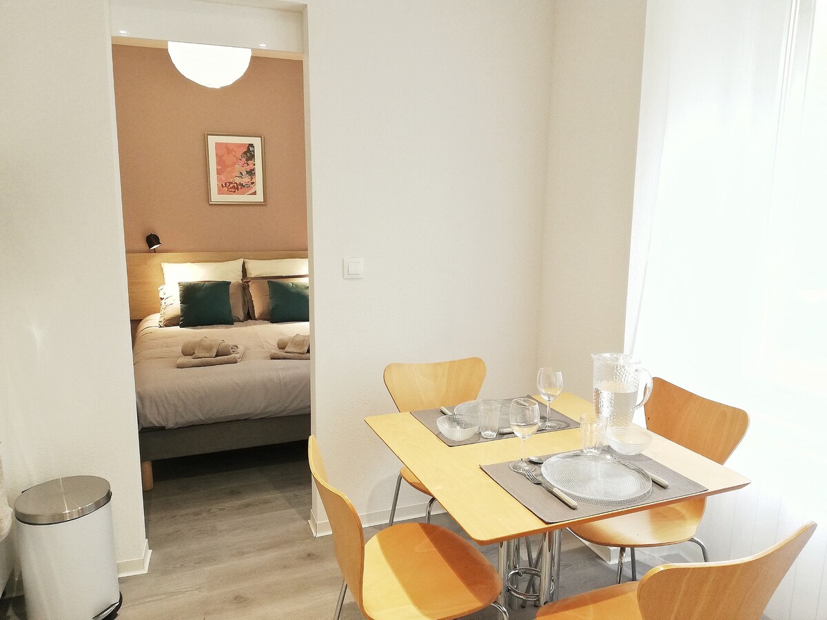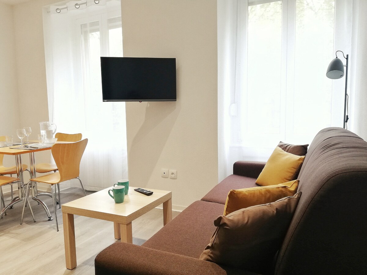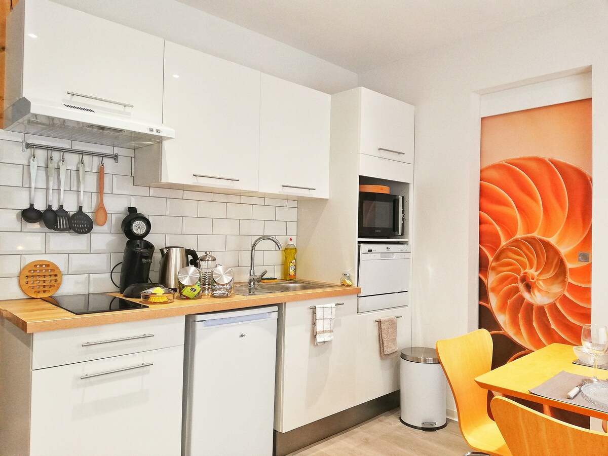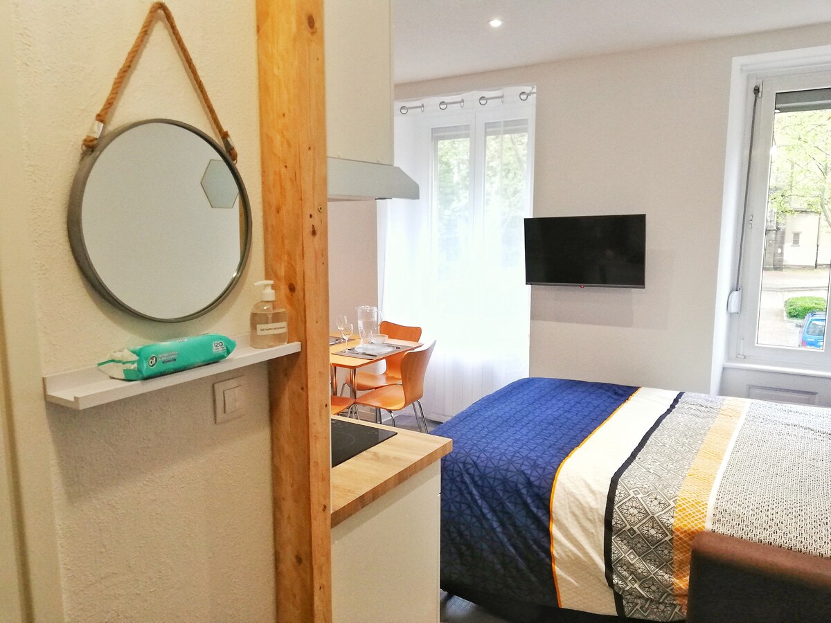 Le Cœur de Spirale est lumineux et cosy avec une décoration de style nature, refait à neuf. Vous aurez tout le confort pour passer un bon séjour touristique ou professionnel.