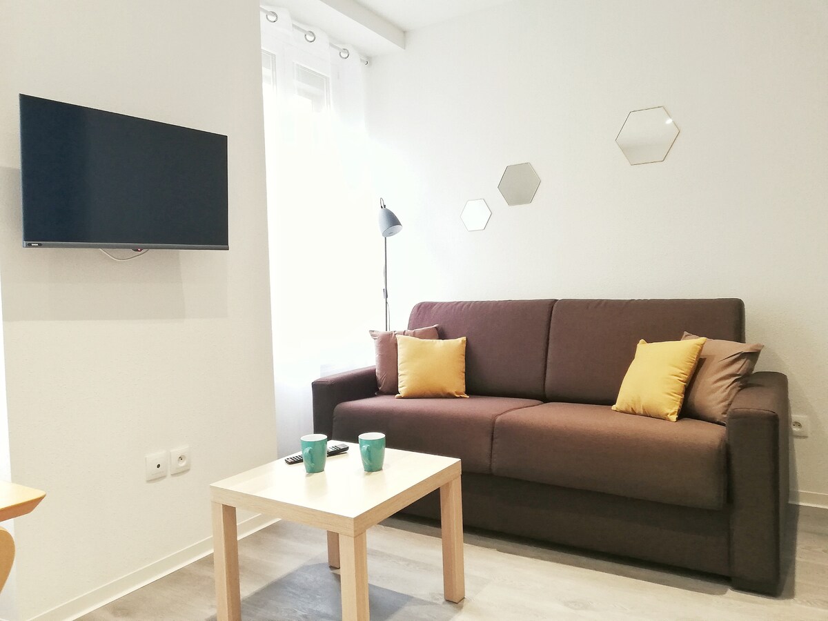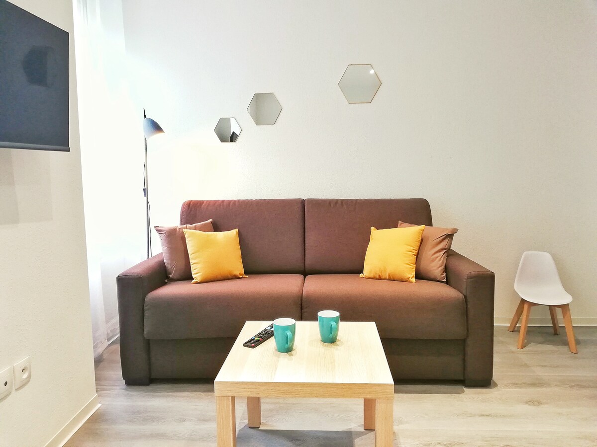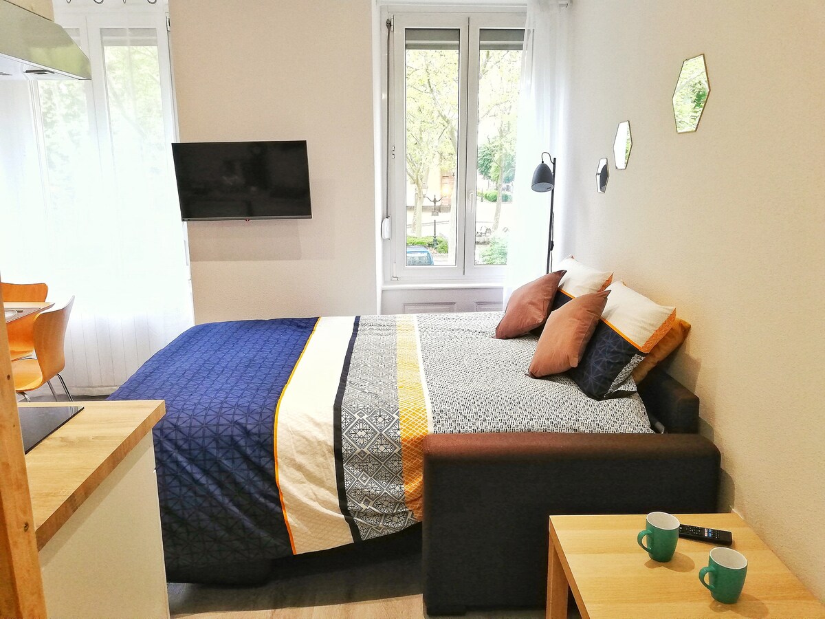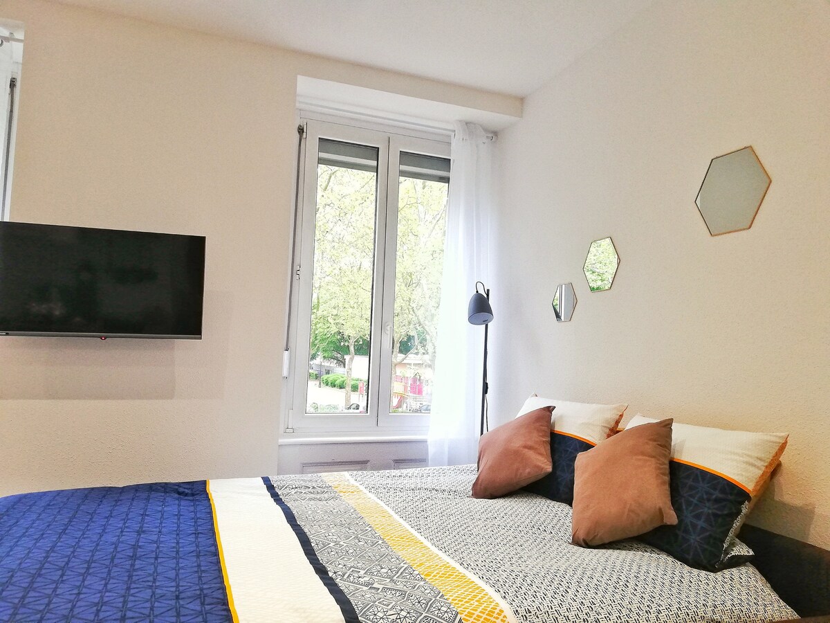 Le Cœur de Spirale est lumineux et cosy avec une décoration de style nature, refait à neuf. Vous aurez tout le confort pour passer un bon séjour touristique ou professionnel.