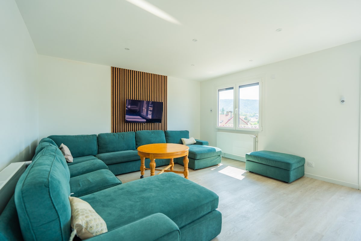 Nichée dans un quartier paisible d’Oyonnax, la Villa Panorama offre 169 m² de confort moderne. Spacieuse et lumineuse, elle dispose d’un grand salon, d’une cuisine équipée, de trois chambres accueillantes et d’un balcon idéal pour se détendre. Jardin privé, aire de jeux et prestations de qualité en font un lieu parfait pour un séjour élégant en famille ou entre amis.