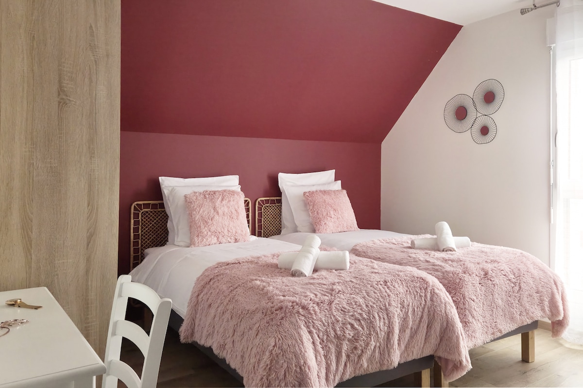 Welcome to Alsace, to Maison LuisAna, a modern and welcoming house located in Logelheim, just 10 minutes from Colmar, the Alsace Wine Route, and the famous Christmas markets.This charming 90 m² house, ideal for 5 guests, combines comfort, authenticity, and conviviality.You will appreciate its large tree-lined garden, sunny terrace, private swimming pool, and pétanque court. Everything has been designed for a relaxing and enjoyable stay in the heart of Alsace.