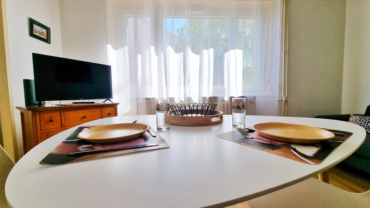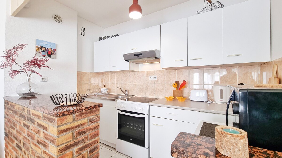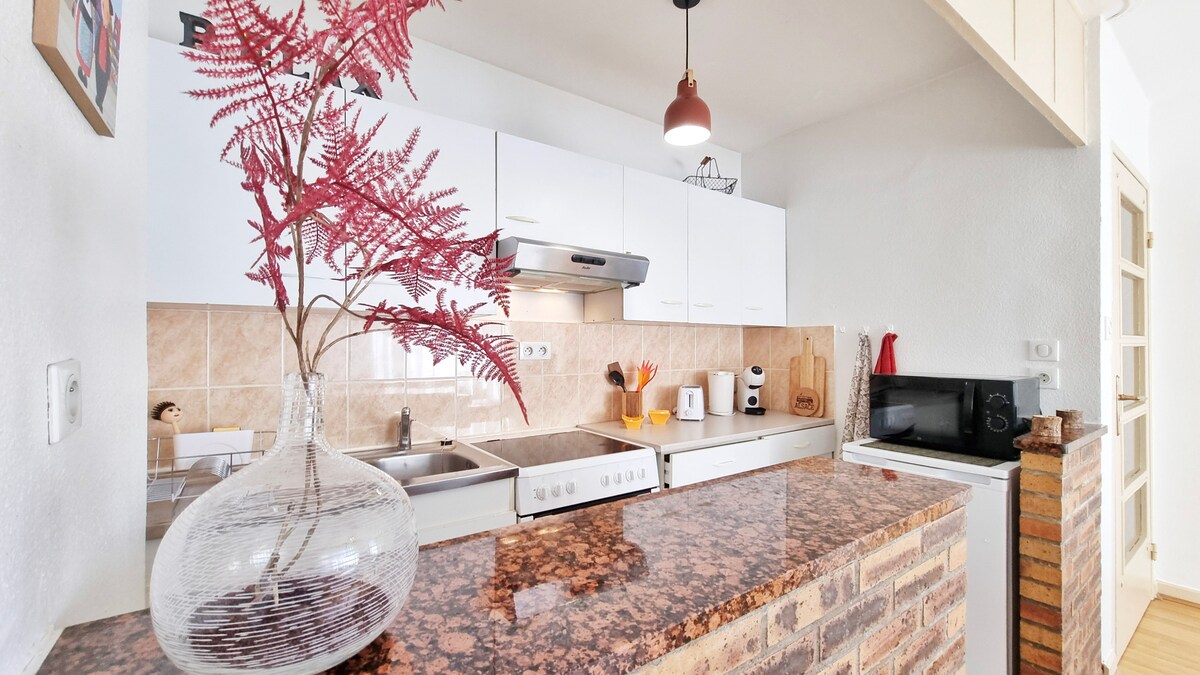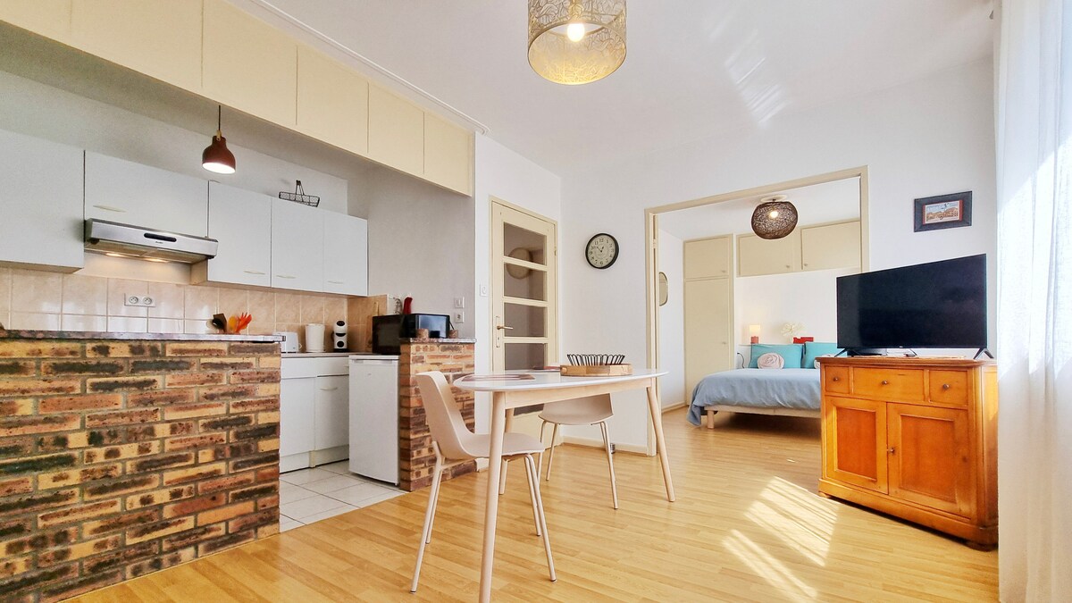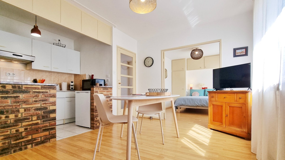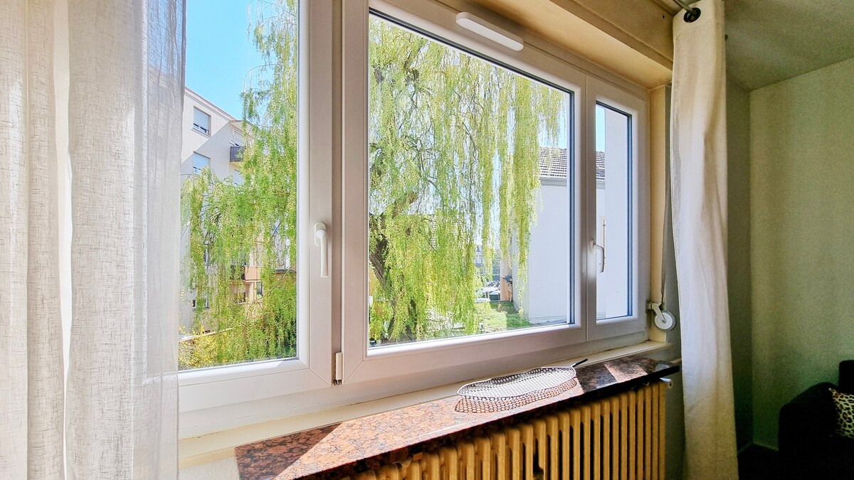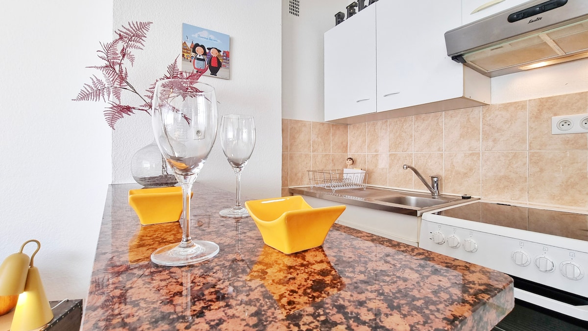 L'Escapade Colmarienne, un T2 de 34m², a été pensé pour offrir tout le confort nécessaire à un séjour à deux.Dans la pièce principale, une atmosphère cosy vous attend, avec un lit double 140cm pour des nuits douces et reposantes. La cuisine équipée vous permettra de préparer vos plats préférés, comme à la maison !Amateurs de mobilité douce ? Un local à vélos est disponible (sur demande et après notre accord) pour explorer les ruelles pittoresques et les vignobles alentours à votre rythme.