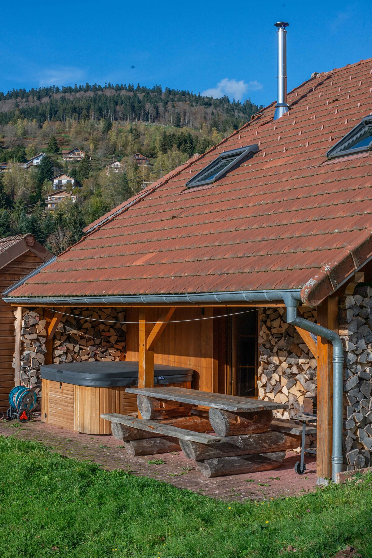 Profitez d'un cadre calme et apaisant avec une vue imprenable sur la montagne, idéale pour se détendre en pleine nature. Le jacuzzi, un véritable havre de bien-être, offre un moment de relaxation parfait pour se ressourcer, que ce soit en famille ou entre amis. Ce lieu convivial et serein invite à la détente et à la convivialité, loin du tumulte quotidien. Un endroit rêvé pour recharger ses batteries et partager des moments inoubliables.
