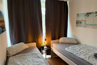 | Wohn-/Schlafbereich • 2 Einzelbetten Schlafzimmer 1 • 2 Einzelbetten Reservierung ohne Kreditkarte! | 2 Zimmer Apartment |