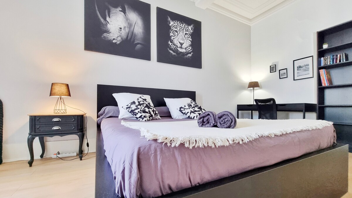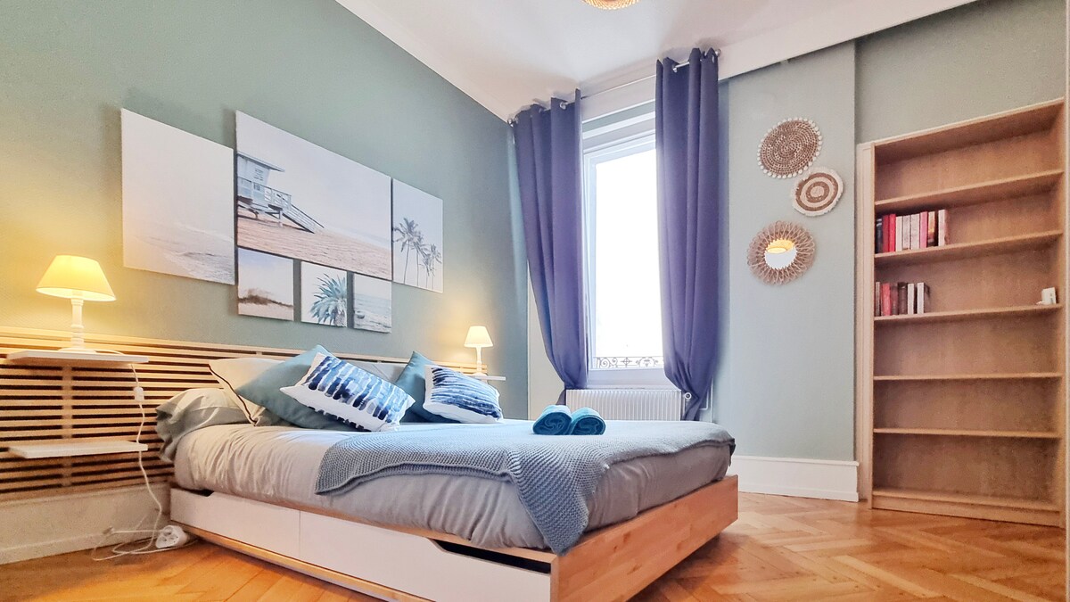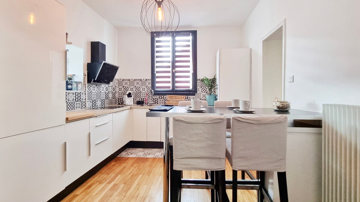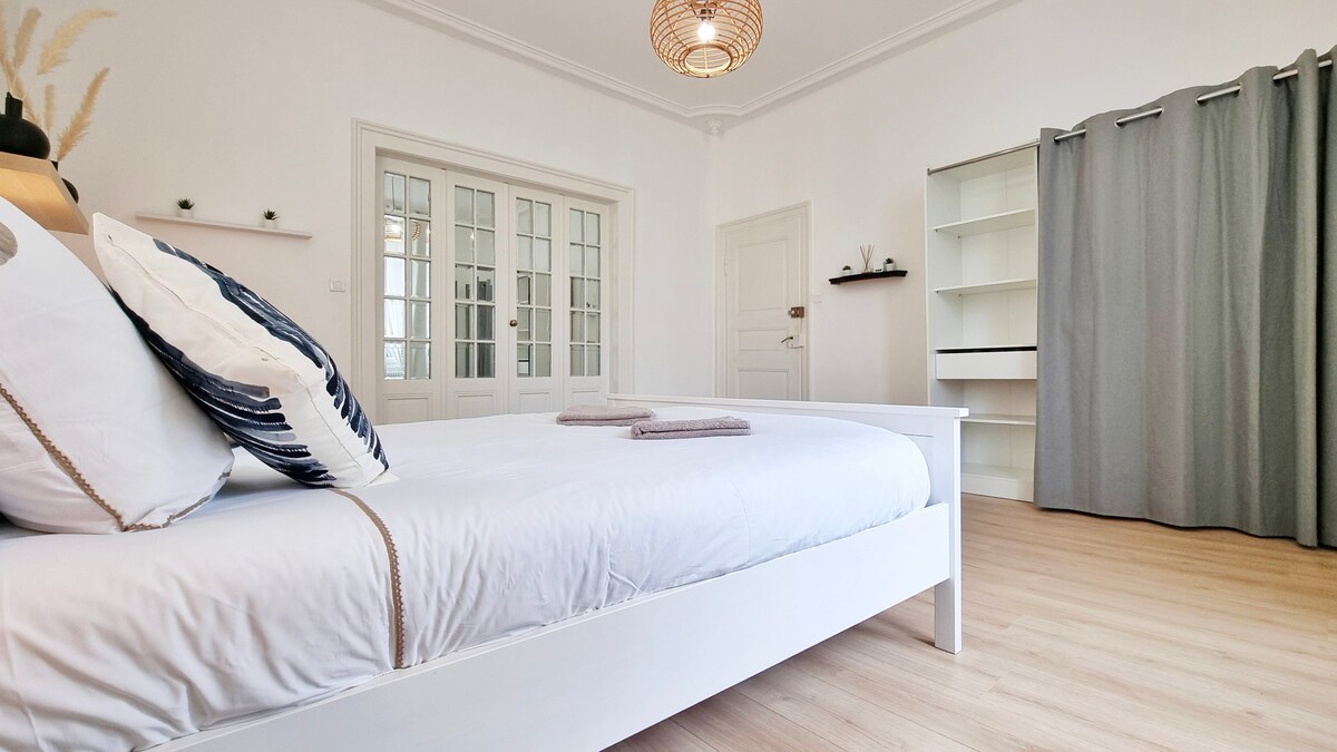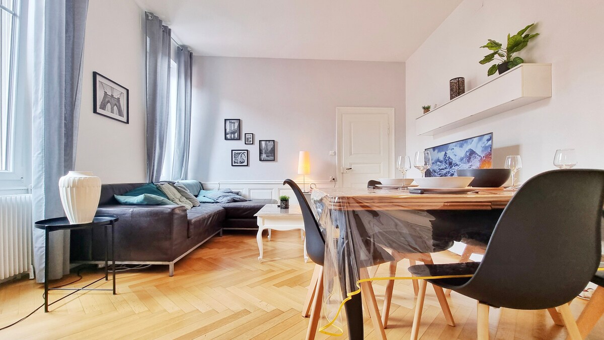 GRAND APPARTEMENT DE 114M2, de style haussmannien de 1904, entièrement rénové en 2021. Fonctionnel et de STANDING en plein CENTRE VILLE de COLMAR. RARE à la location saisonnière avec ses 3 grandes chambres, équipées de lits queen size ou lit double+ bureau et grand dressing. Logement sous alarme et bâtiment sous vidéosurveillance exterieurBien lire les conditions d arrivée et de départ.
