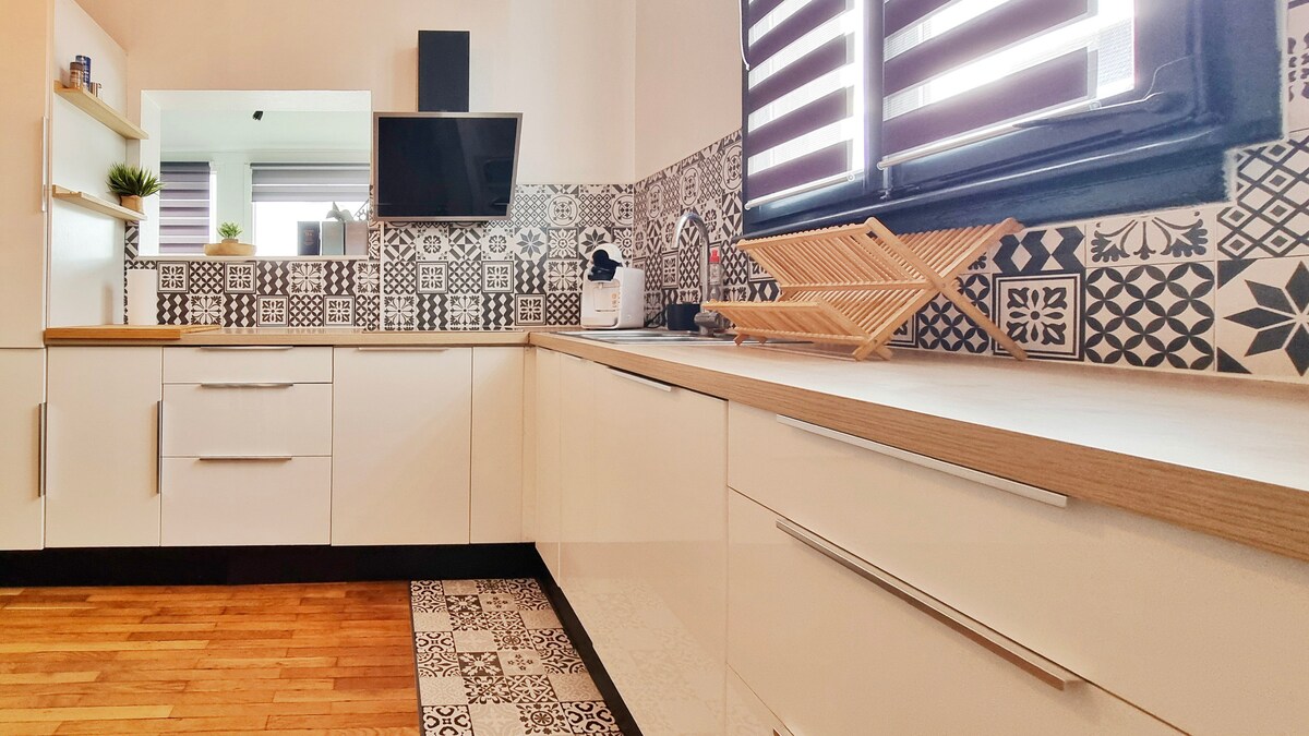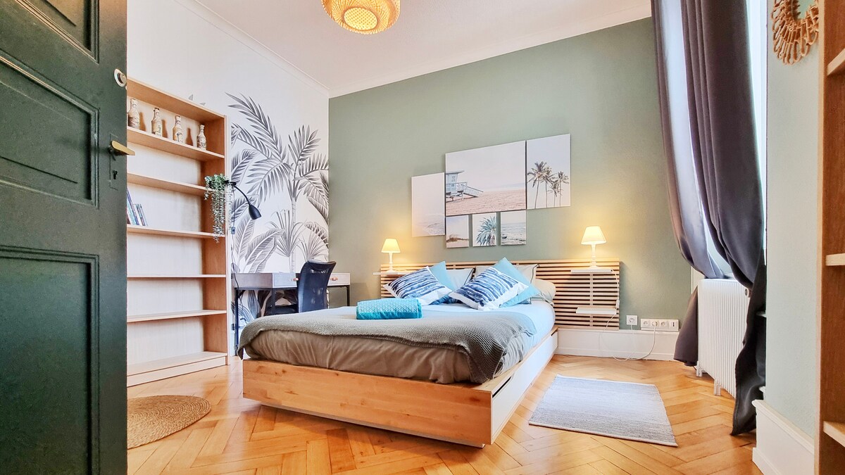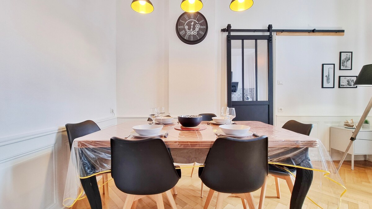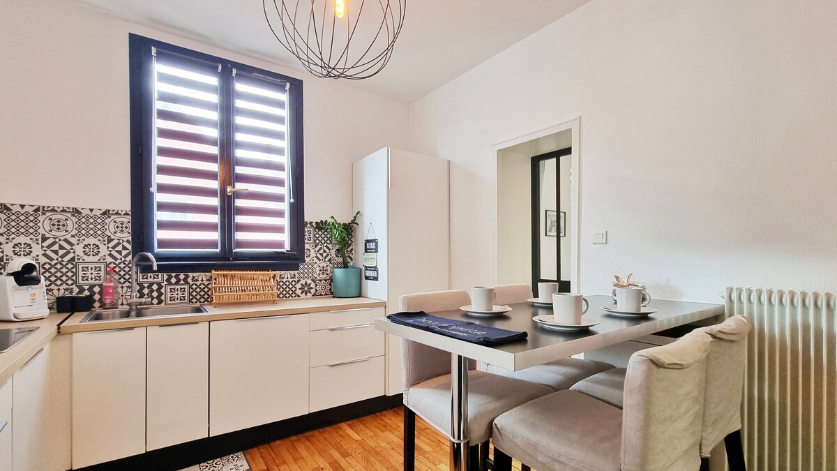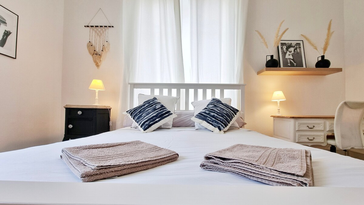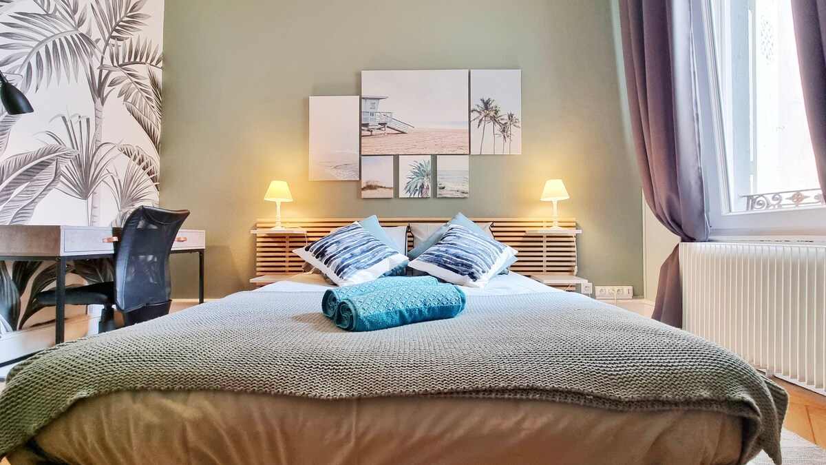 GRAND APPARTEMENT DE 114M2, de style haussmannien de 1904, entièrement rénové en 2021. Fonctionnel et de STANDING en plein CENTRE VILLE de COLMAR. RARE à la location saisonnière avec ses 3 grandes chambres, équipées de lits queen size ou lit double+ bureau et grand dressing. Logement sous alarme et bâtiment sous vidéosurveillance exterieurBien lire les conditions d arrivée et de départ.