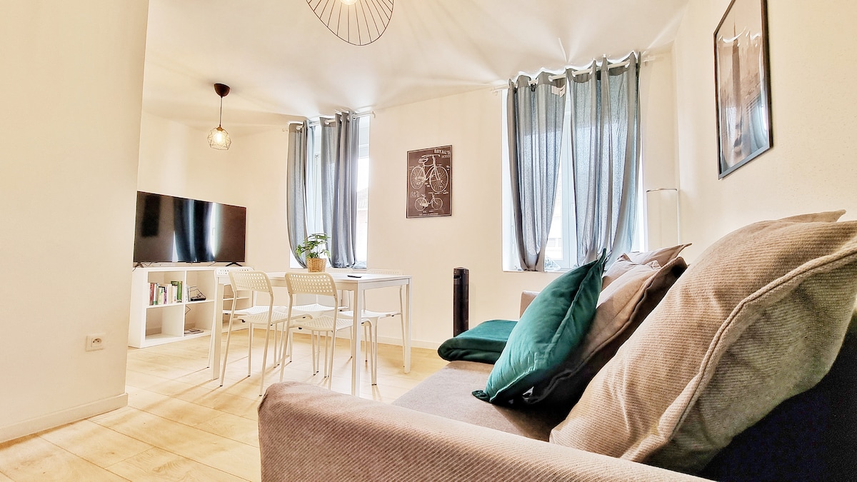 Découvrez L'Écrin Mulhousien, un appartement chic et moderne pouvant accueillir jusqu'à 4 personnes. Offrant tout le confort nécessaire, cet espace lumineux est idéalement situé pour explorer Mulhouse et ses environs.