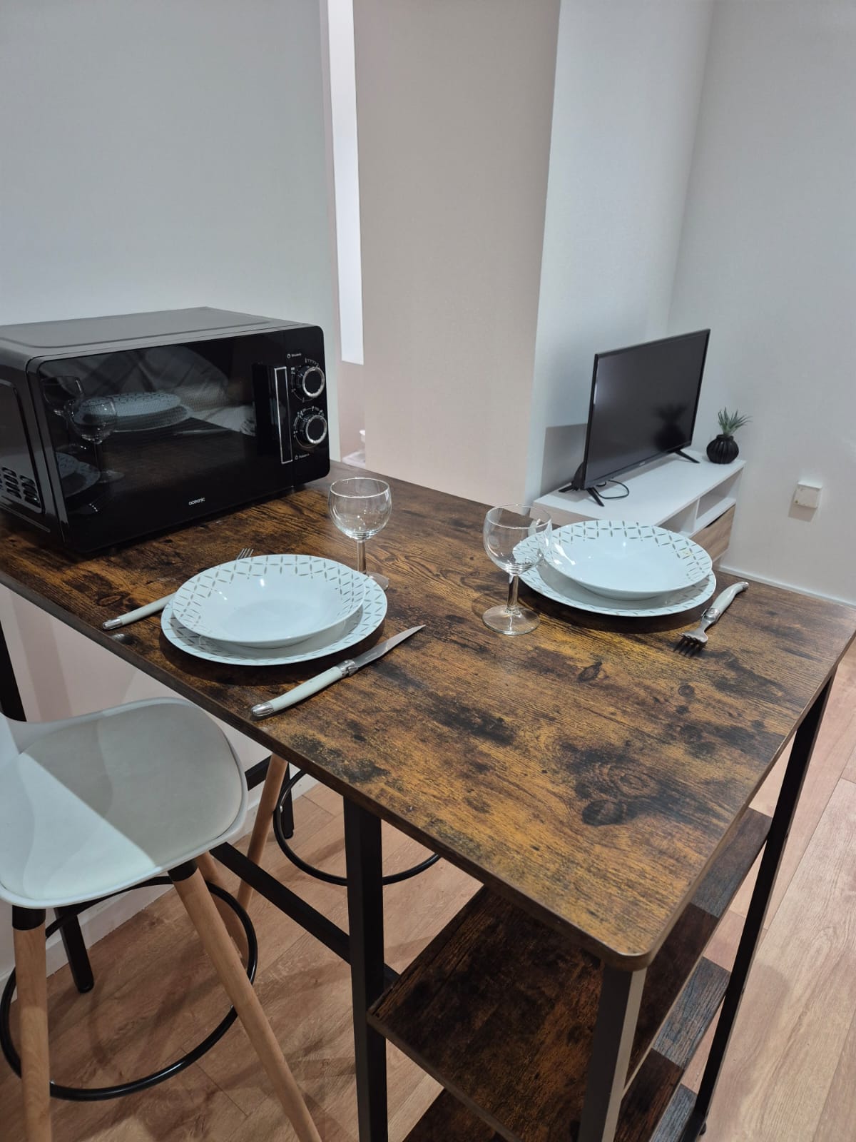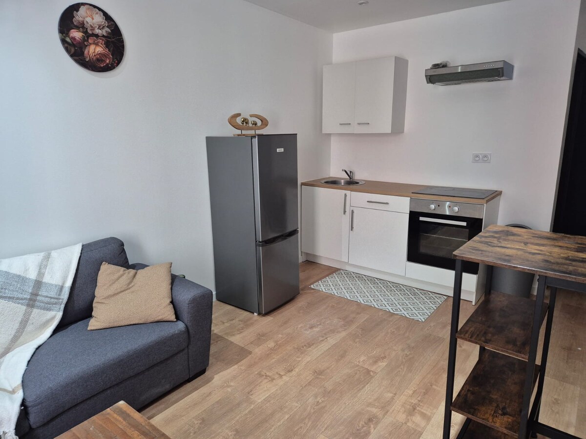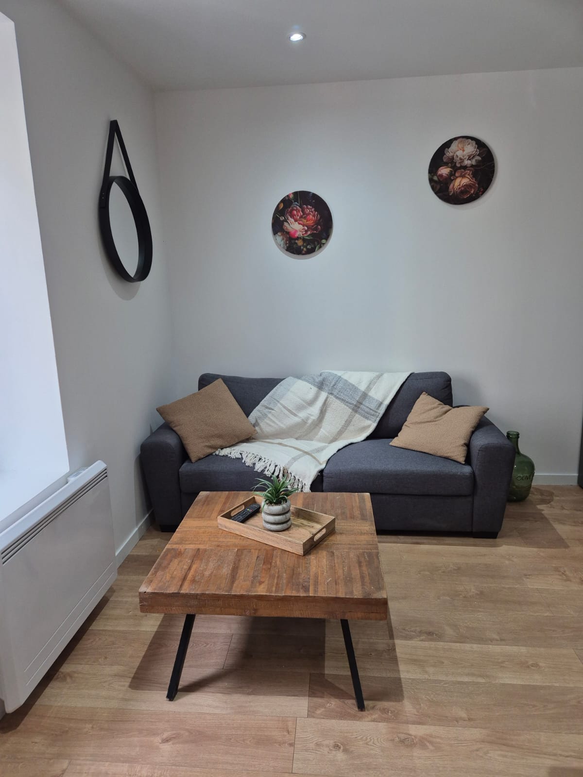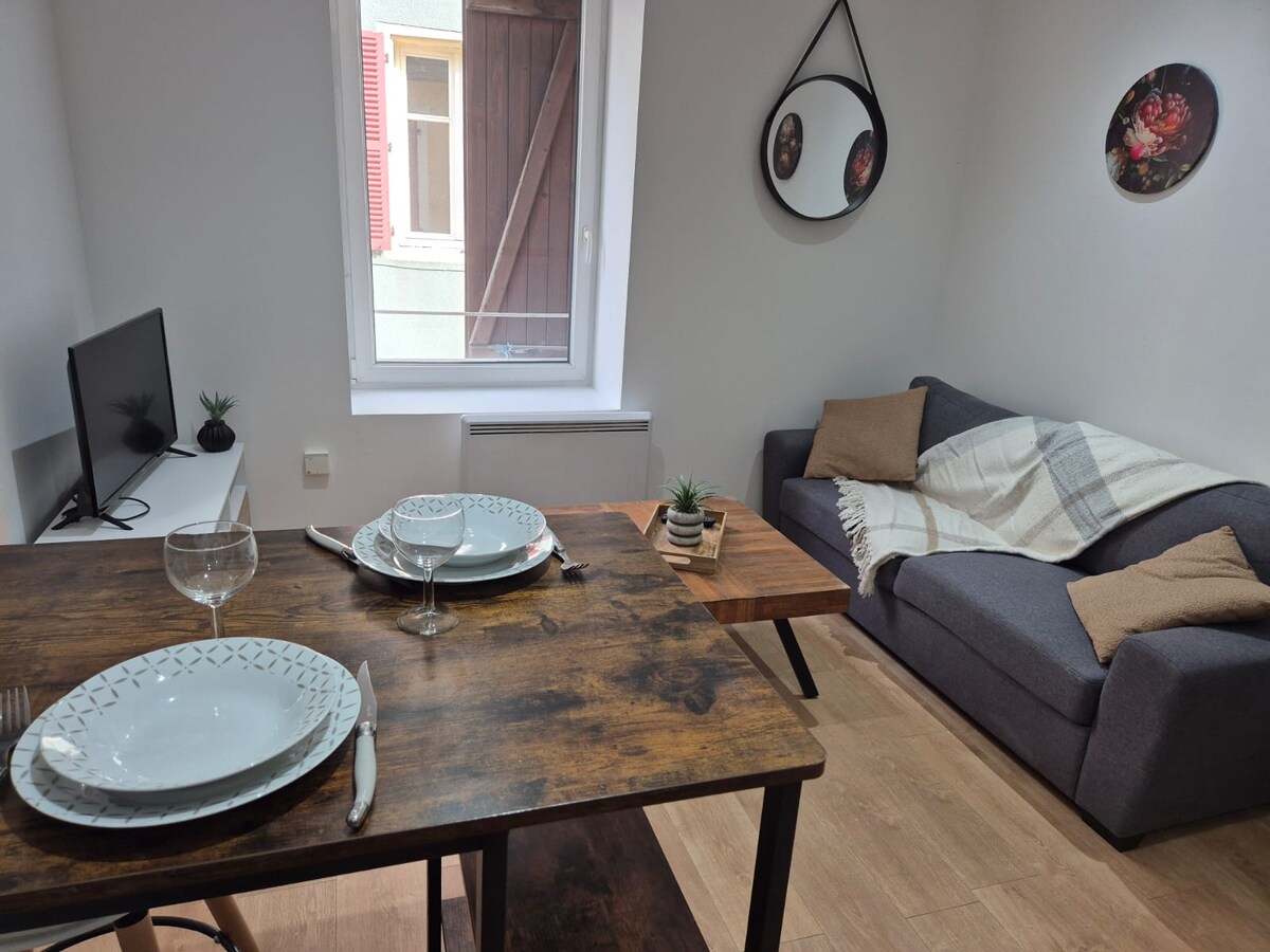 Enjoy a peaceful stay in this flat, ideally located in the heart of Montbéliard. Enjoy a fully-equipped kitchen, a cosy living room with sofa bed, TV and WIFI, a comfortable bedroom with double bed and linen provided, and a bathroom with shower and washing machine. All amenities are nearby. Nestled in a quiet lane, it's the perfect base for exploring the city.