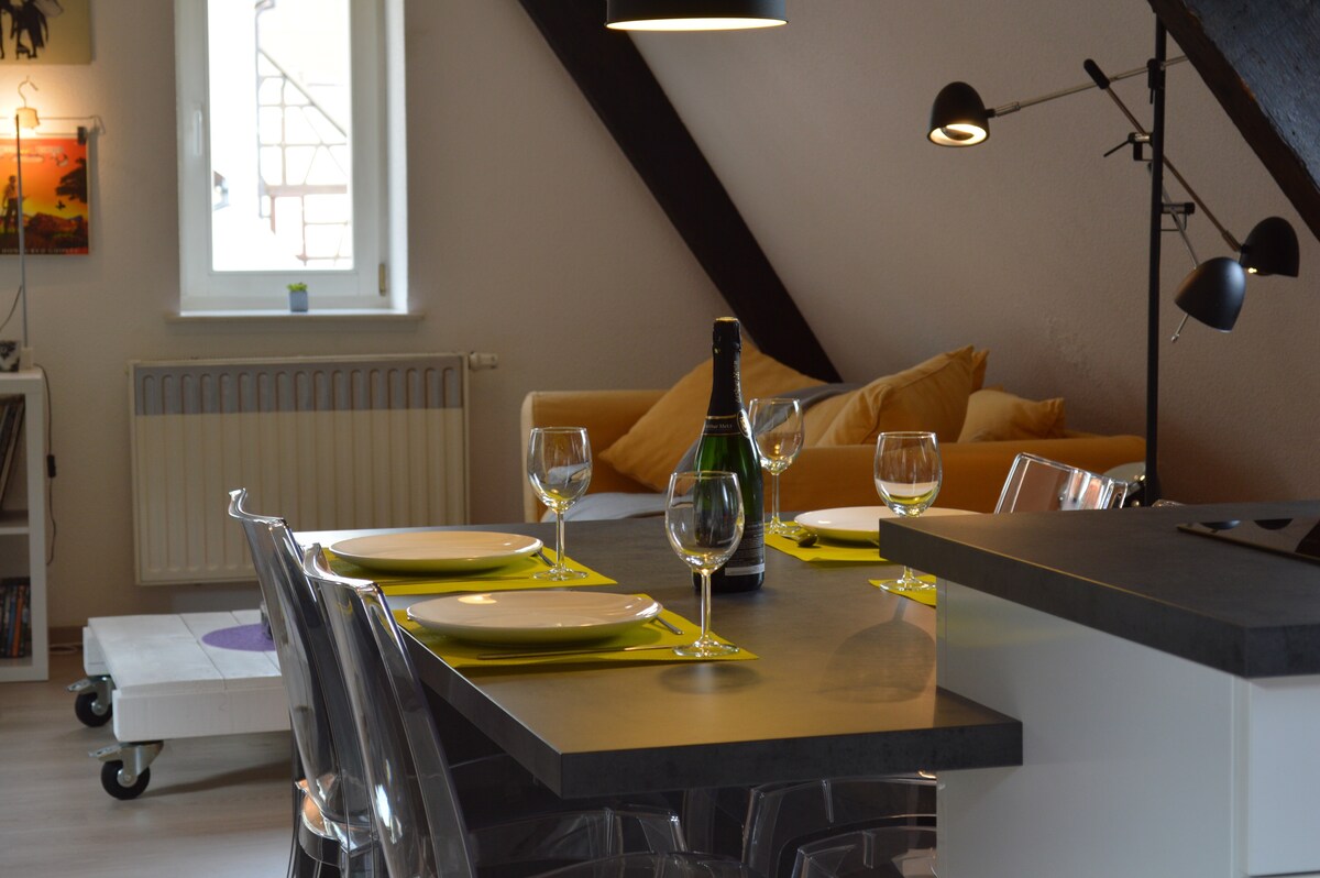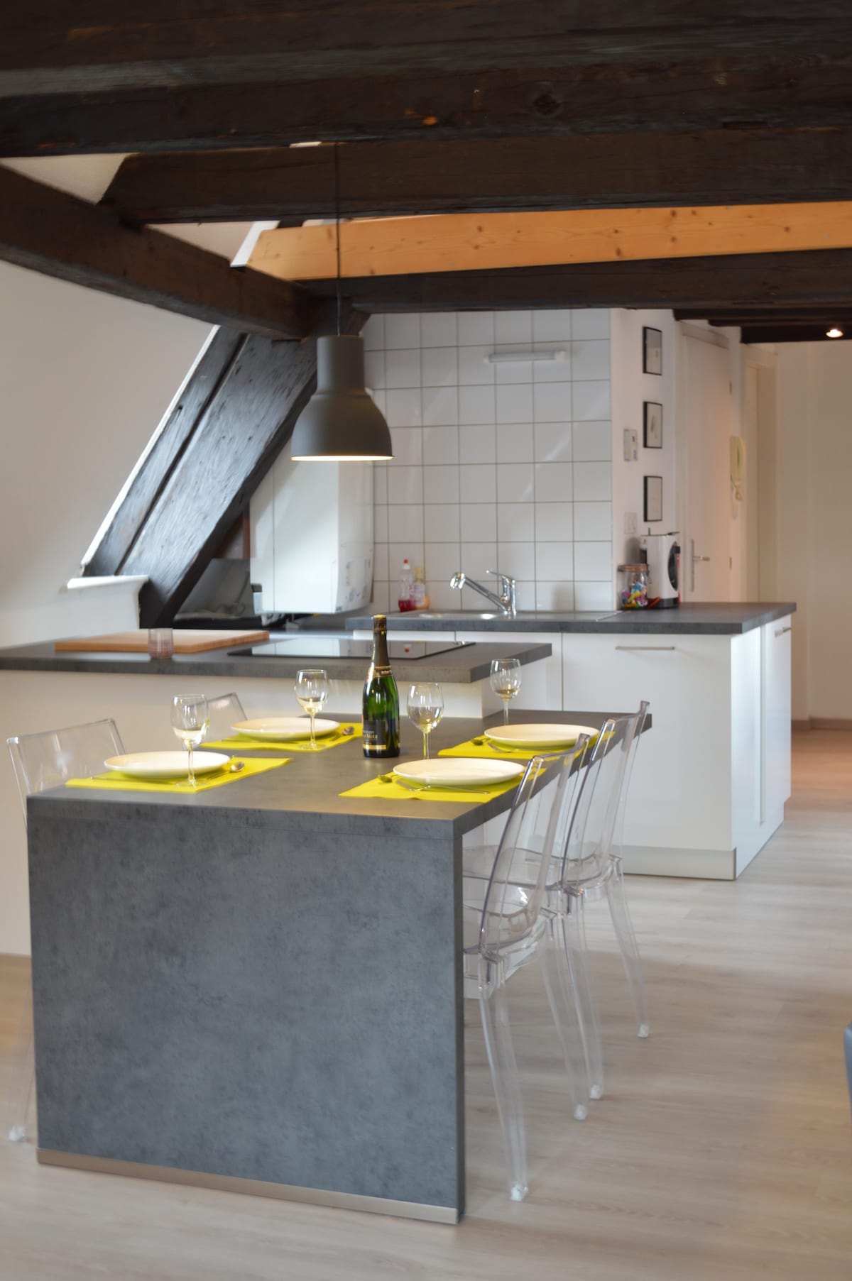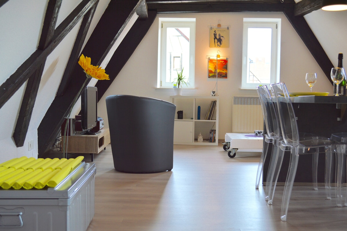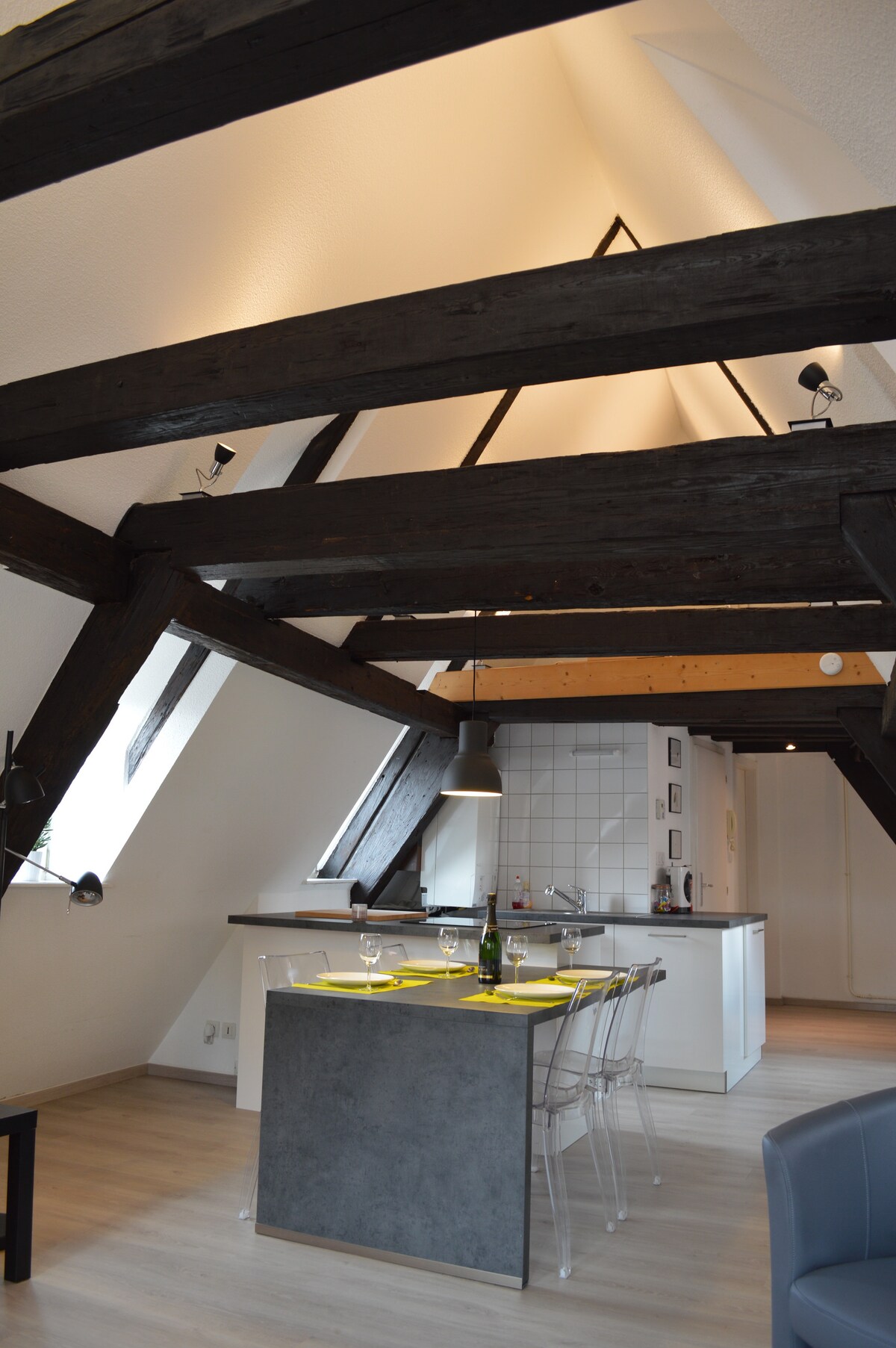 Dans l'hyper centre de Colmar, à quelques mètres à peine de la zone piétonne, dans une maison alsacienne du 17e siècle, découvrez cet appartement atypique, décoré avec goût, pour 2 ou 4 personnes. Point de départ idéal pour visiter la ville, vous logez à moins de 10 minutes à pieds des principaux sites touristiques colmariens !