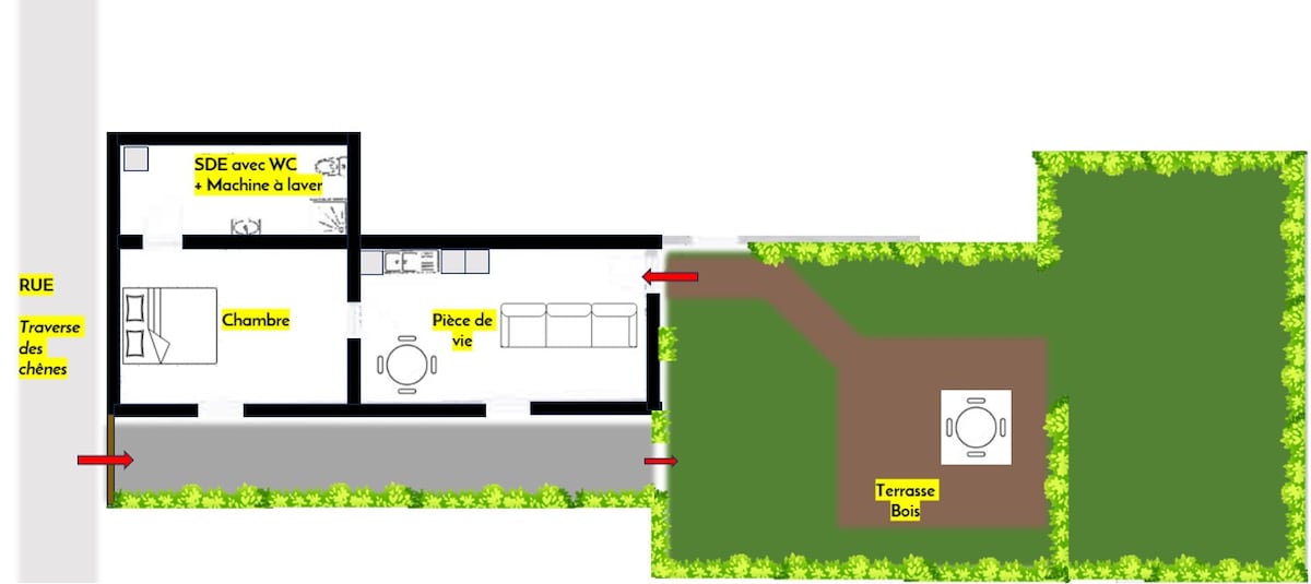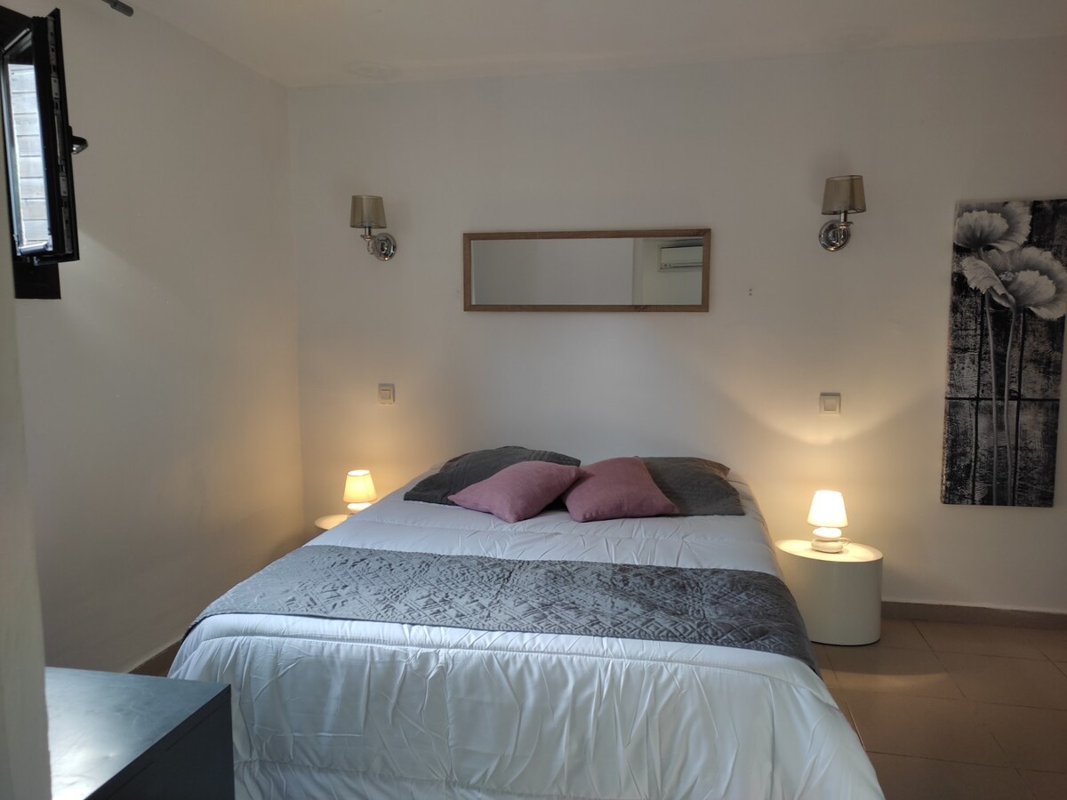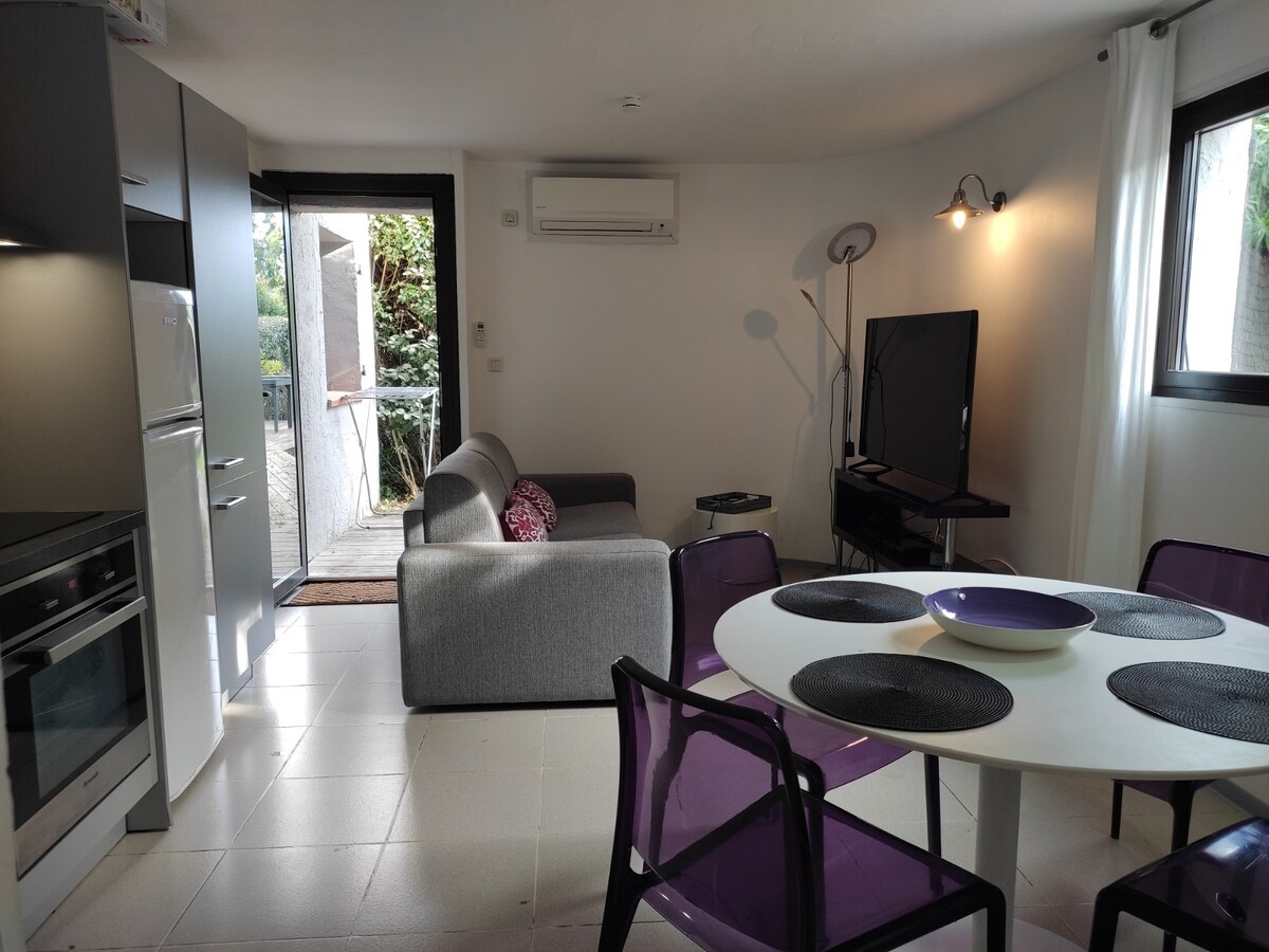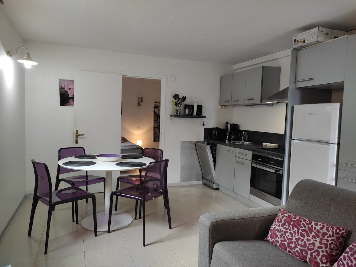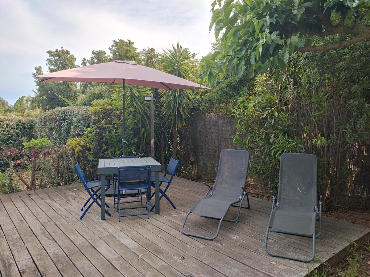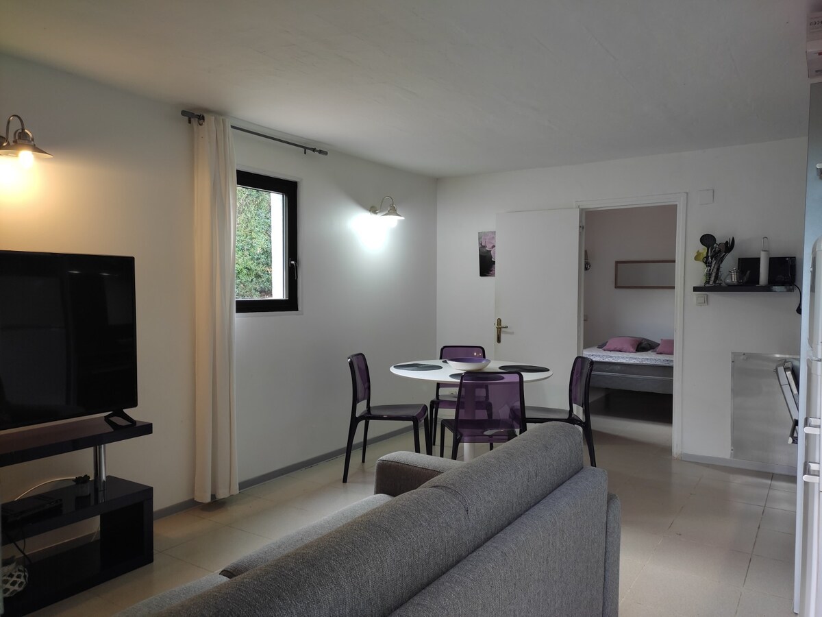 Ce spacieux T2, à la fois confortable et bien conçu, se trouve en rez-de-jardin d'une grande villa partagée.Complètement climatisé, il offre une pièce de vie avec cuisine et coin TV (équipé d'un canapé-lit), une chambre double, une salle de douche, ainsi qu'un jardin privé avec espace repas pour 2 à 4 personnes.Vous profiterez également d'un accès à la piscine de Marina di Fiori, située à seulement 500 mètres à pied de la plage.