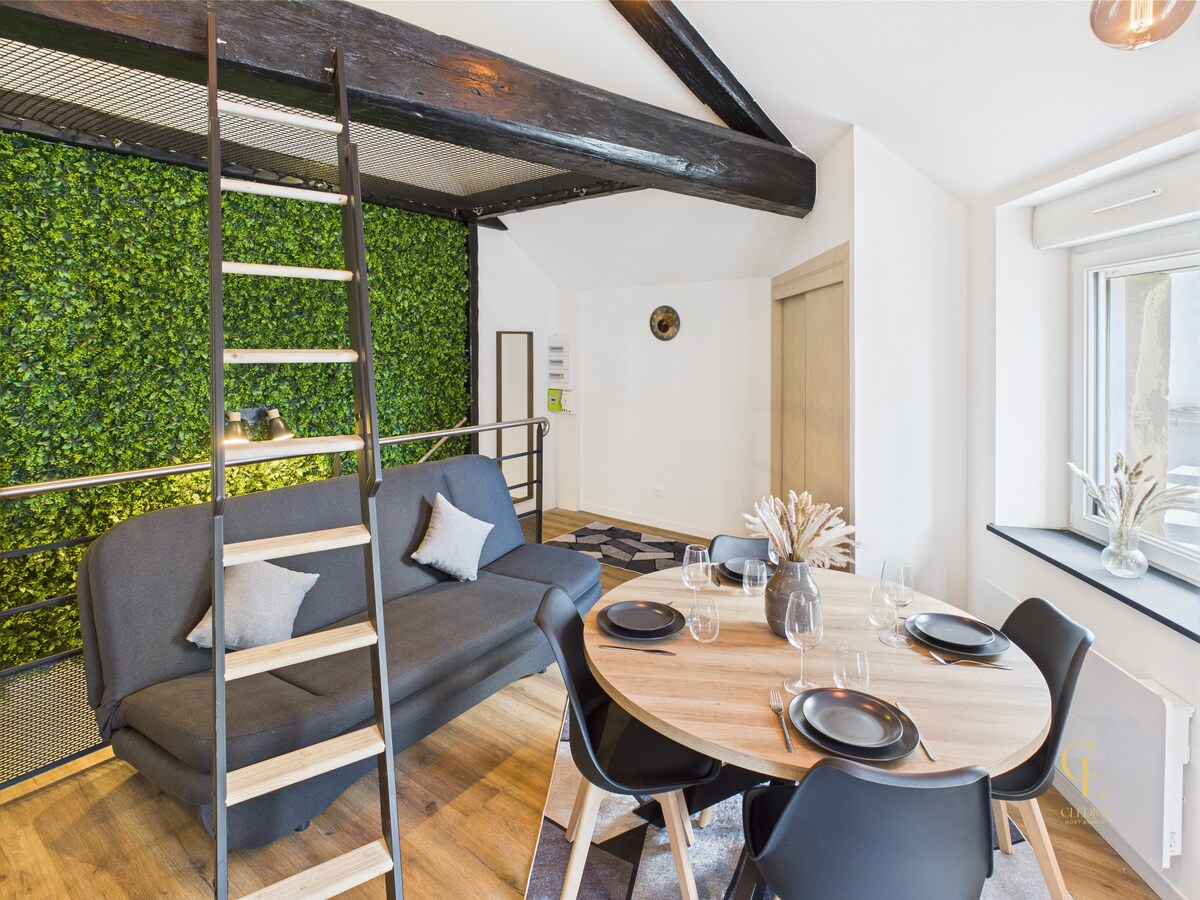 Situé à Remiremont, conçu pour accueillir jusqu’à 4 adultes. L’intérieur se compose d’une cuisine entièrement équipée permettant de cuisiner comme à la maison. Un espace détente est prévu avec une baignoire balnéo idéale pour se relaxer. Le séjour propose un coin cinéma avec une grande télévision et une ambiance tamisée, ainsi qu’un filet suspendu pour un moment de détente original. Le logement bénéficie également d’un parking gratuit pour stationner en toute tranquillité.