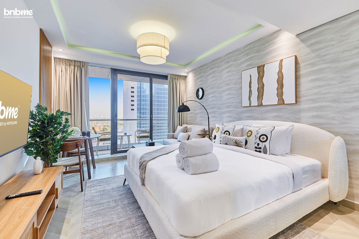 Experience this modern studio at Gold Crest Views 2, JLT, designed with a spacious layout featuring a King bed, a fully equipped kitchen, and a cosy living area. Located just an 11-minute drive from Dubai Marina, Palm Jumeirah, and JBR, it is perfect for exploring the city's waterfront attractions. The building boasts a rooftop pool, gym, and secure parking. Situated in a lively lakeside community with dining spots like Subway, Postcard Cafe JLT, and Shellfish Bar, plus convenient shopping at Spinneys. Enjoy bnbme’s daily housekeeping and personalised concierge services for a seamless experience.