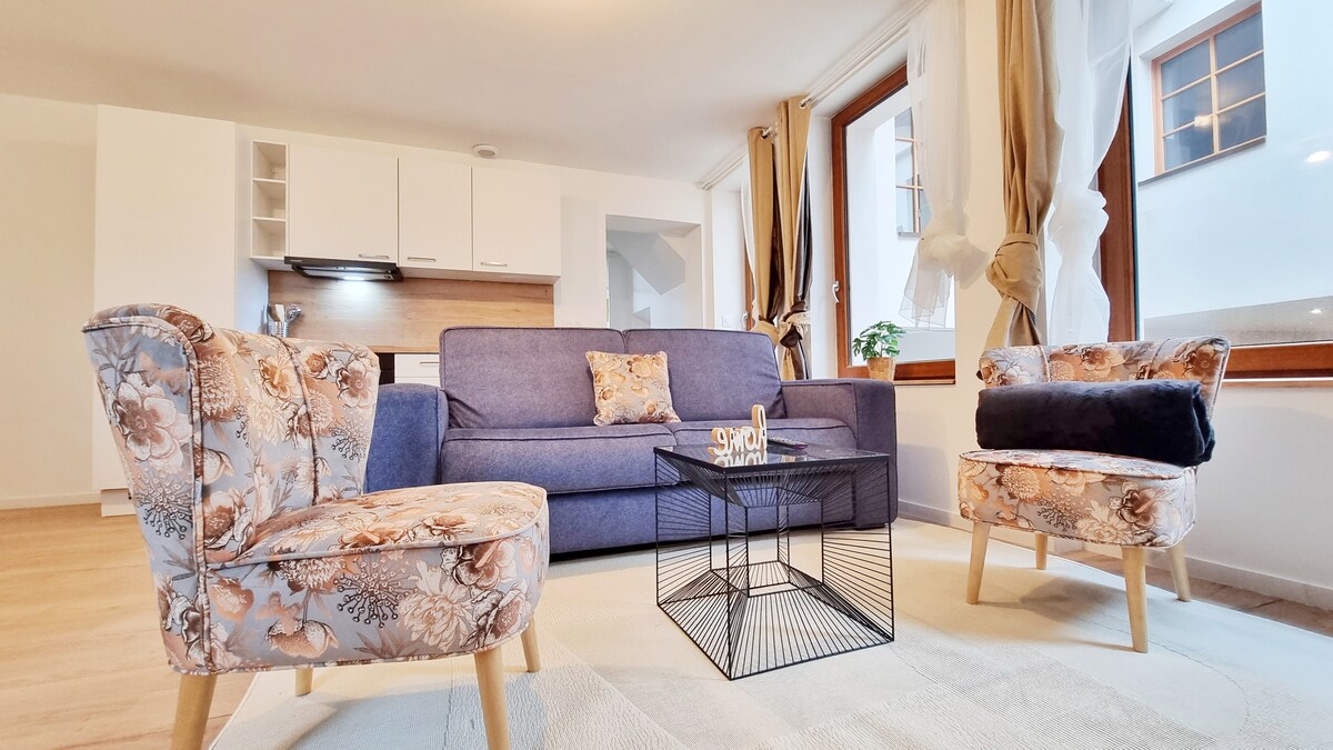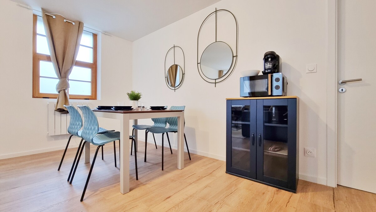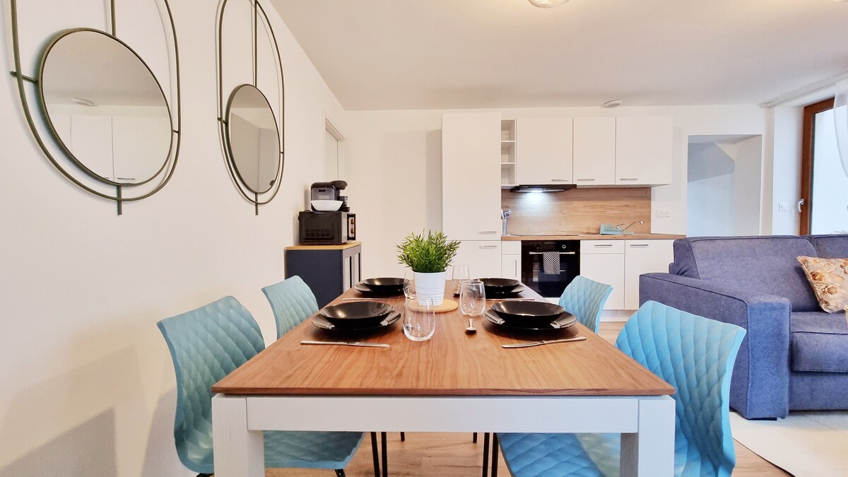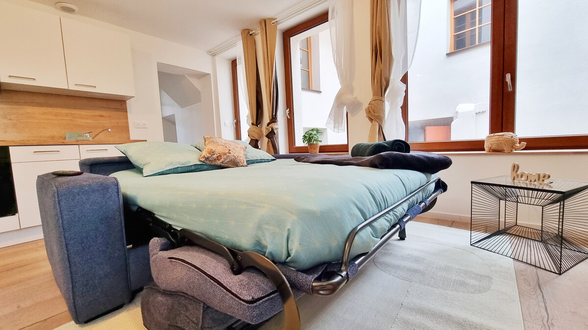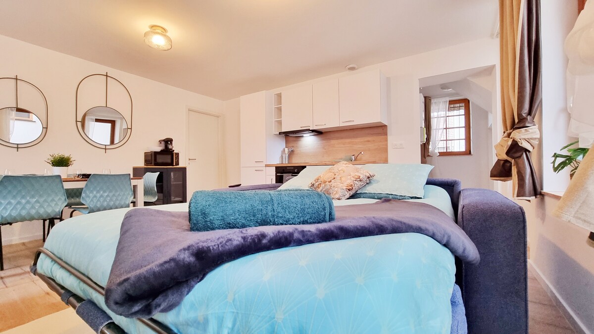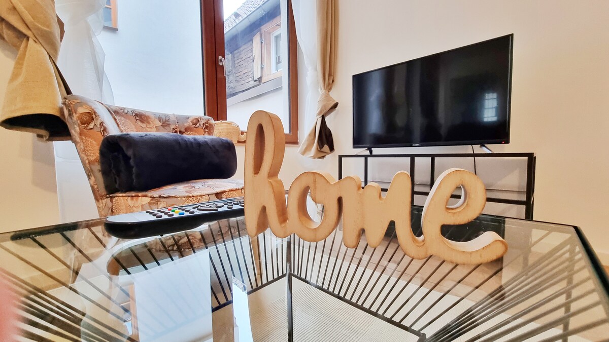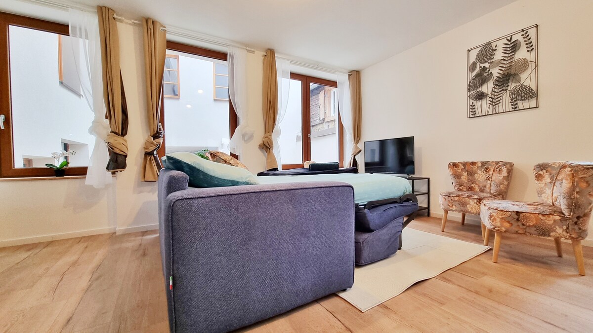 Dans une maison alsacienne du 17e siècle, découvrez "La vie en bleu" pour 2 ou 4 personnes. Ce logement très calme est au rez-de-chaussée sur élevé et donne sur l'arrière cour de la maison. Quelque soit l'objet de votre visite, cet appartement vous mettra certainement à l'aise grâce à sa cuisine équipée, son spacieux salon, une salle d'eau avec toilettes et chambre.Pour vous permettre de venir l'esprit léger, les serviettes de toilette et draps vous seront fournis.