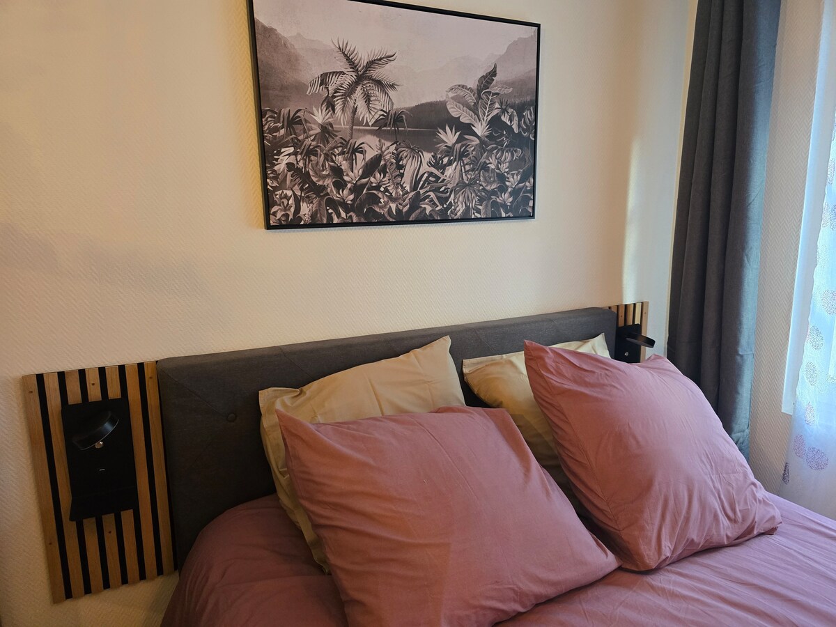 Ideally located in the heart of Montbéliard, just a few minutes' walk from the castle, the train station and the pedestrian street, our accommodation is equally suited to professionals, tourists and cyclists, with a secure space on the ground floor for your bicycles.Are you looking for a clean, comfortable apartment with a tasteful decor, quality bedding, attentive owners and an independent arrival?Then our apartment is for you!