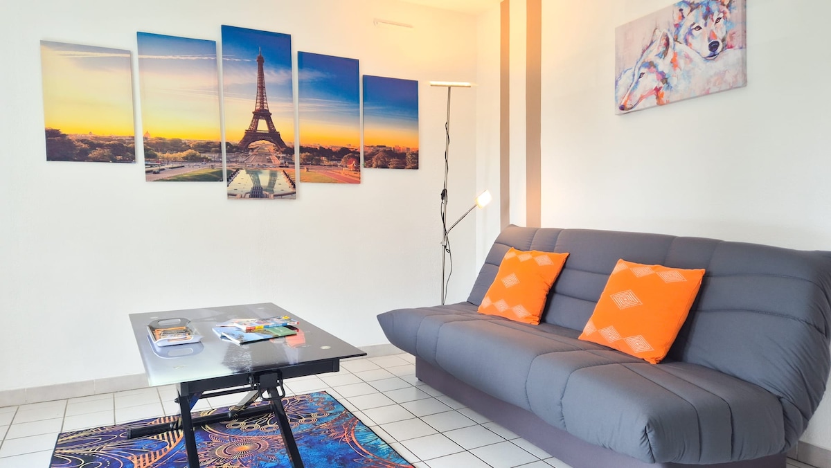 Superbe T2 climatisé avec balcon et parking privé sécurisé, idéal pour 4 voyageurs. Profitez d’un logement tout confort à deux pas de la mer, des commerces et des transports. Parfait pour des vacances sans stress ! Cuisine entièrement équipée, wifi rapide, jeux de société et climatisation pour un séjour 100 % détente.